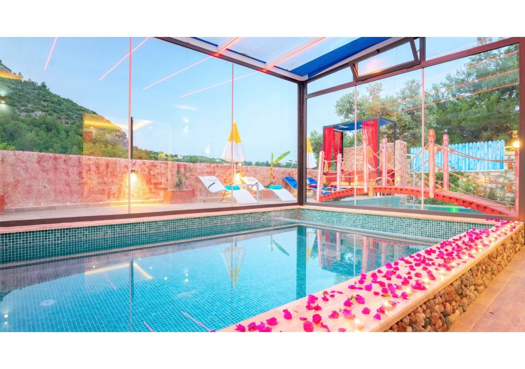 Villa Adalya, Kalkan’ın İslamlar Köyü’nde yer almaktadır. Doğa manzarasını kesintisiz bir şekilde izleyebileceğiniz bu villa, geniş aileler ve arkadaş grupları için ideal bir tatil seçeneğidir. İçerisinde bulunan kapalı ısıtmalı havuzuyla misafirlerine keyifli ve konforlu bir tatil deneyimi sunmaktadır.