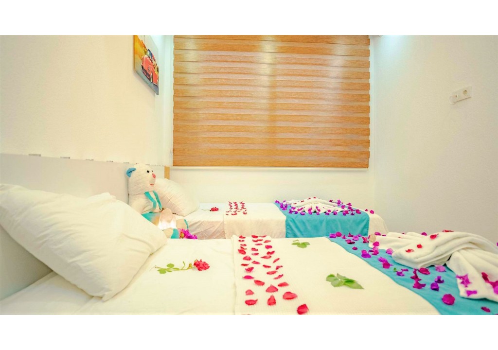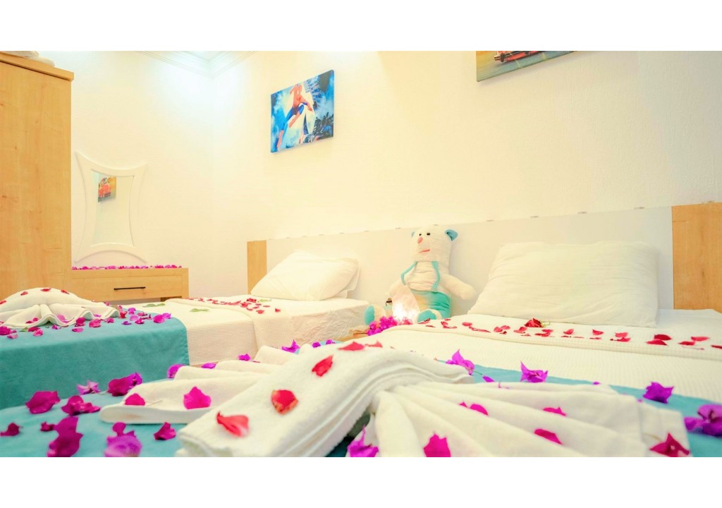 Detayları; İki adet tek kişilik yatak, komodin, klima, elbise dolabı, banyo ve tuvalet bulunmaktadır.