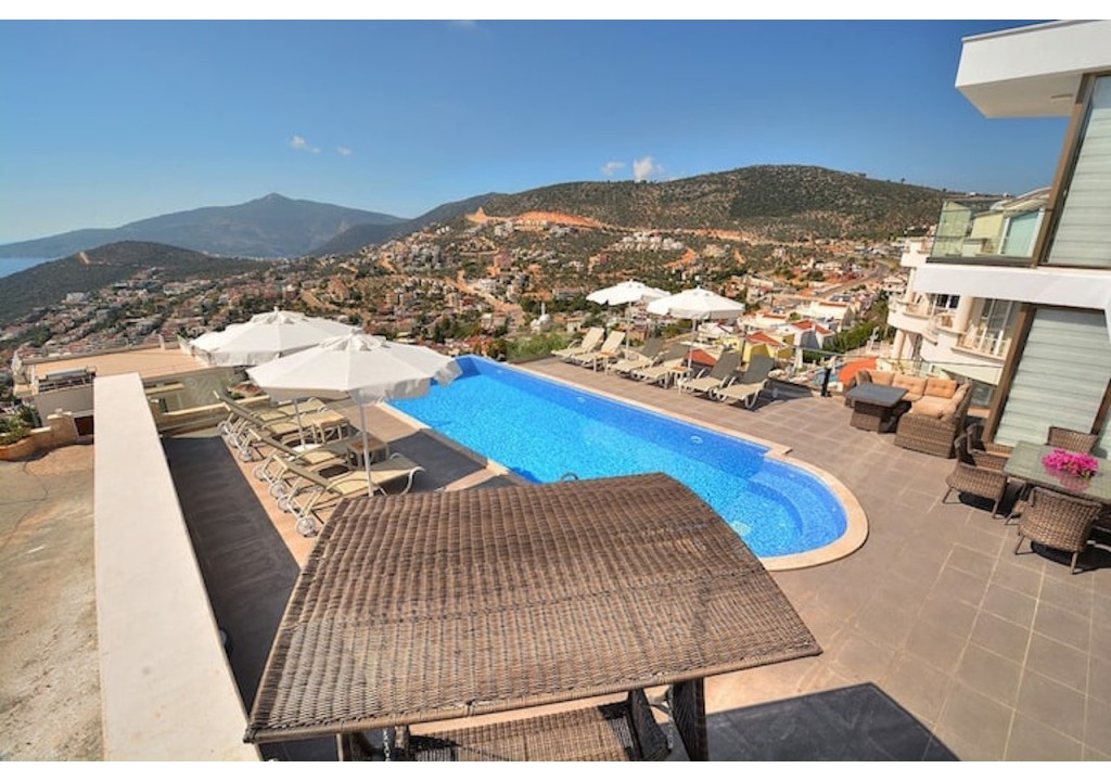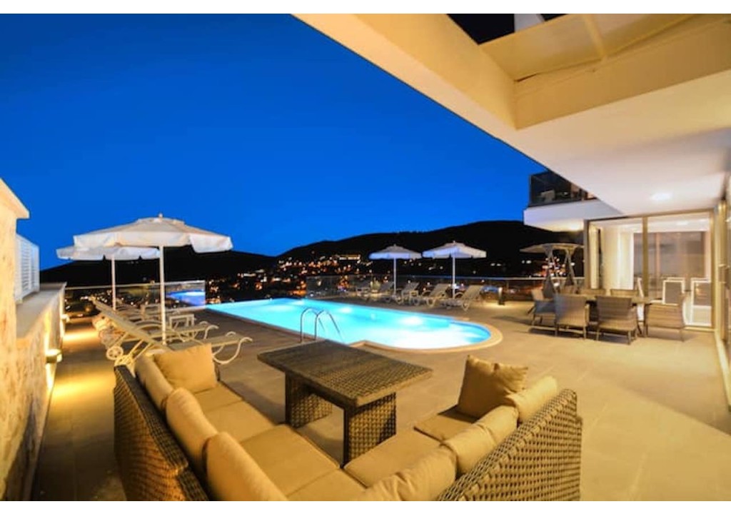 Detayları; Oturma grubu, Uydu TV (LCD), Klima,10 kişilik yemek masası, Havuz terasına çıkış,