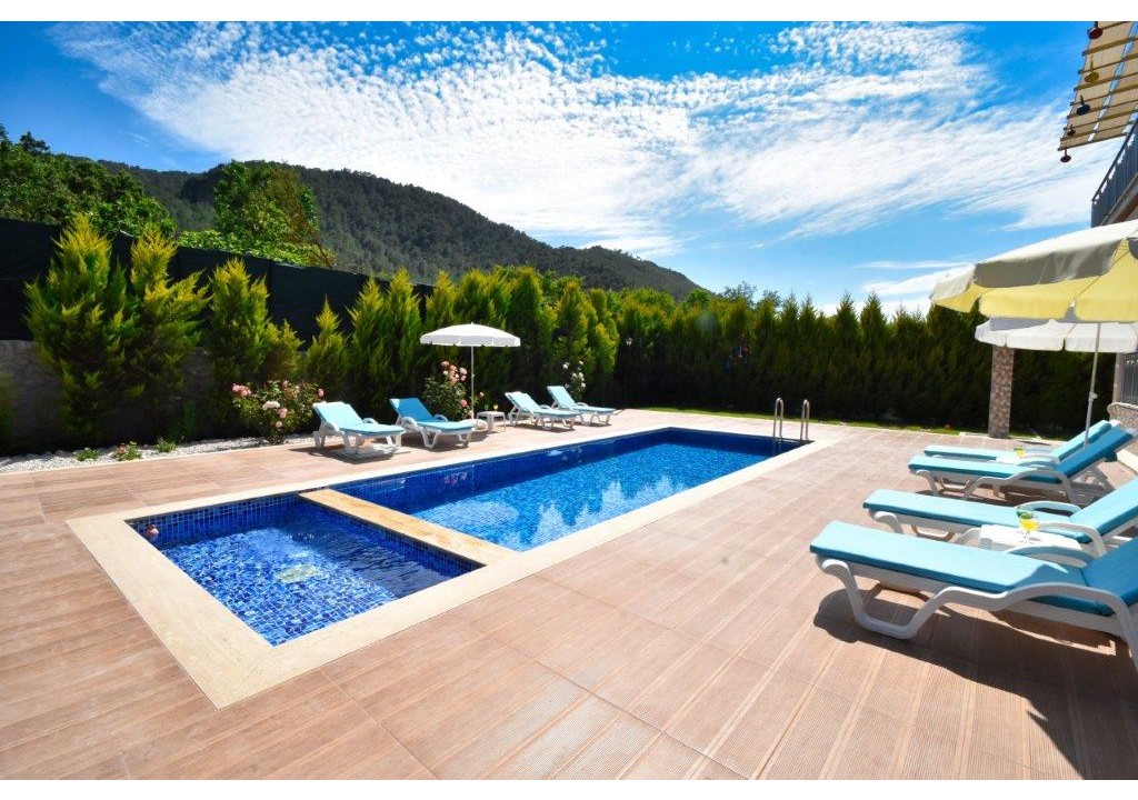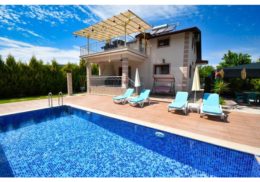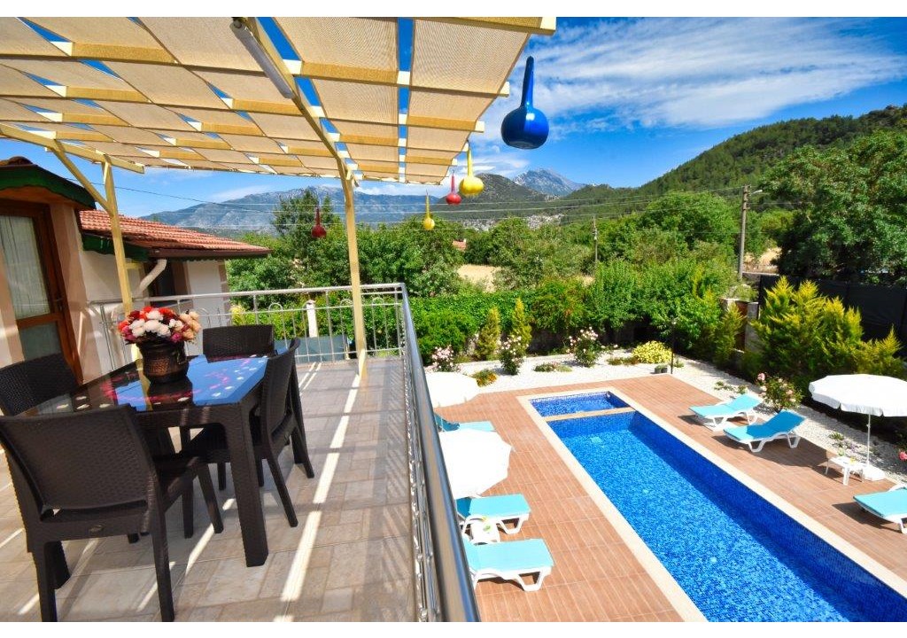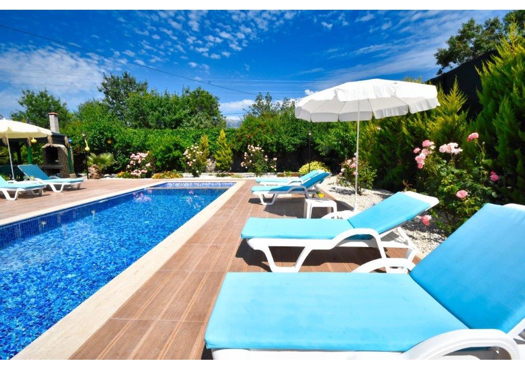 Detayları; Oturma grubu, Uydu TV (LCD), Klima, 8 kişilik yemek masası, Havuz terasına çıkış,