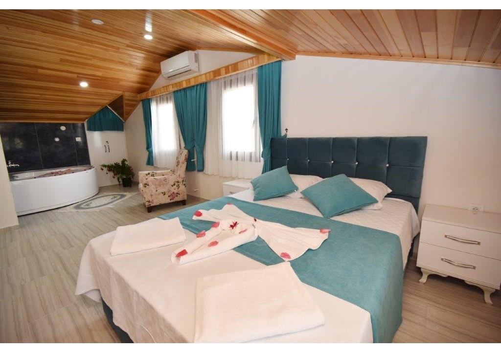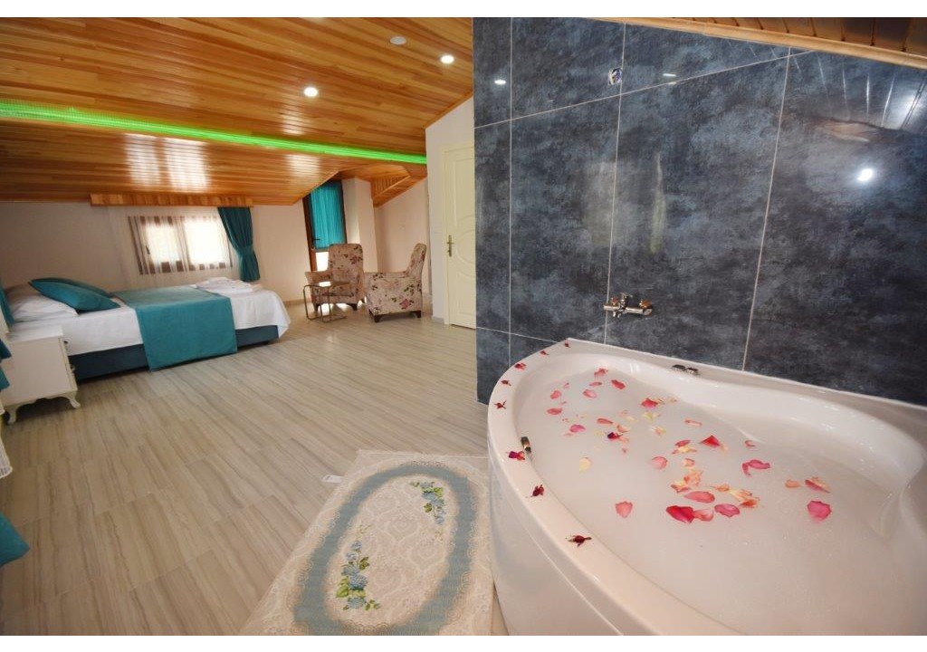Detayları; Çift kişilik yatak, makyaj masası, komodin, klima, elbise dolabı, jakuzi, banyo ve tuvalet bulunmaktadır.
