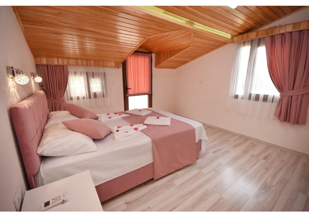 Detayları; Çift kişilik yatak, makyaj masası, komodin, klima, elbise dolabı, banyo ve tuvalet bulunmaktadır.