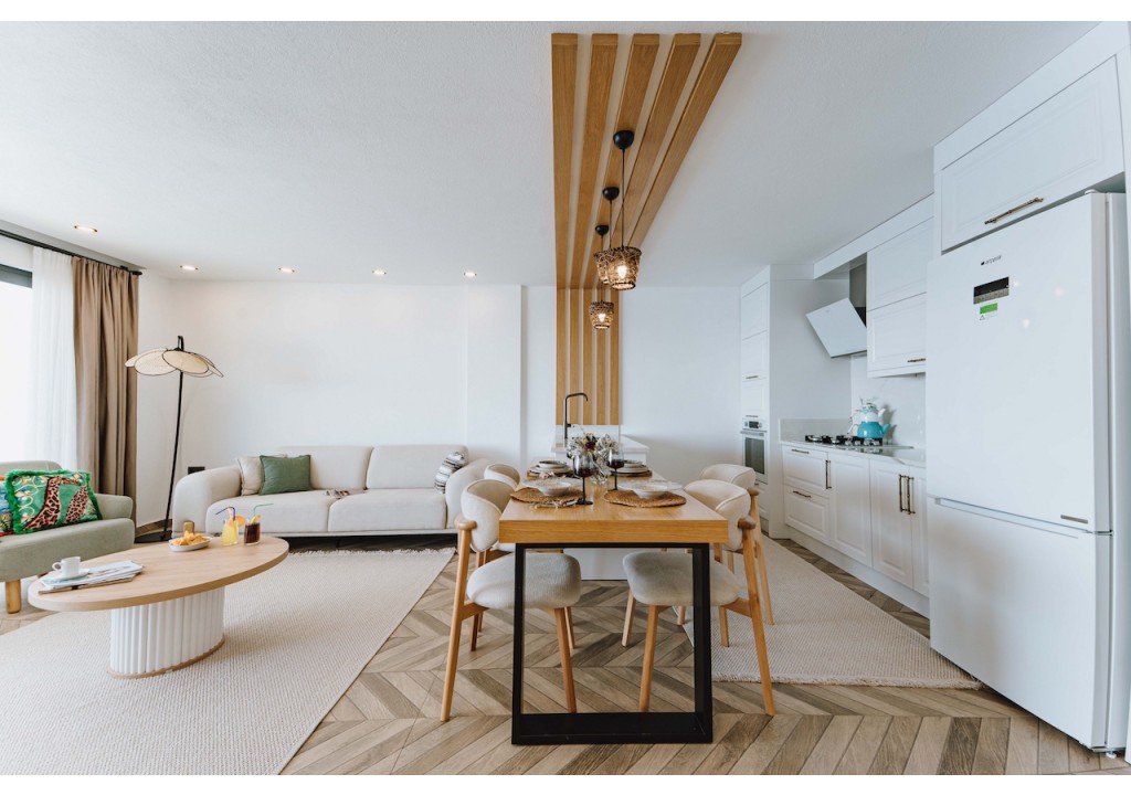 Detayları; Buz dolabı, Bulaşık makinesi, Fırın 4’lü Ocak (ankastre), Mikrodalga fırın, Elektrikli su ısıtıcı, su sebili, 6 kişilik yemek takımı, Tava, Tencereler, Çatal bıçak vb.