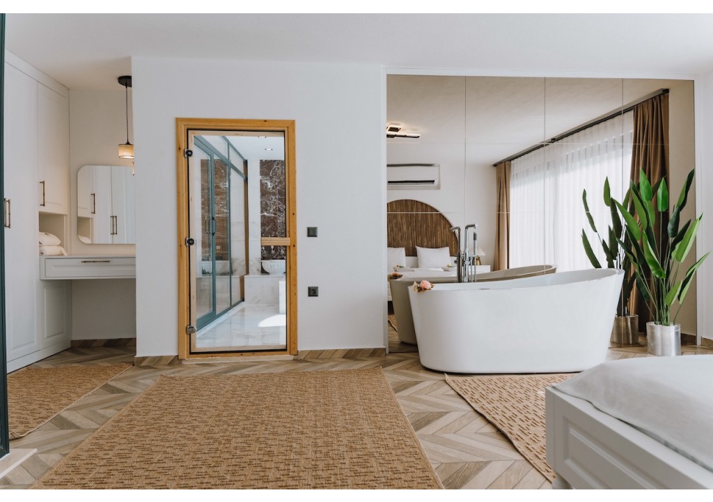Detayları; Çift kişilik yatak, makyaj masası, komidin, klima, elbise dolabı, jakuzi, banyo ve tuvalet bulunmaktadır.