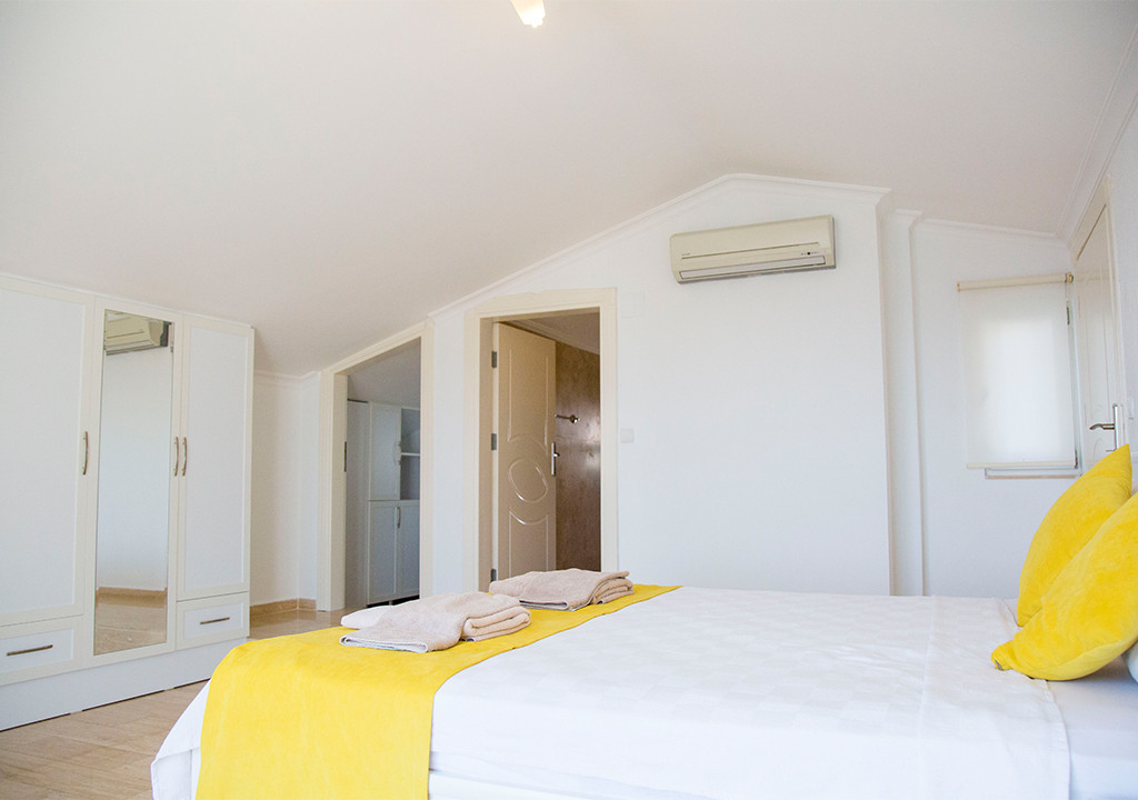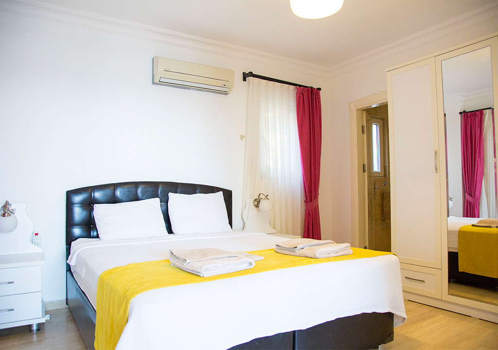 Detayları; Çift kişilik yatak, makyaj masası, komodin, klima, elbise dolabı, banyo ve tuvalet yer almaktadır.
