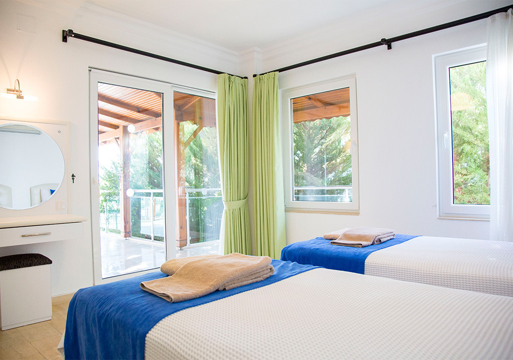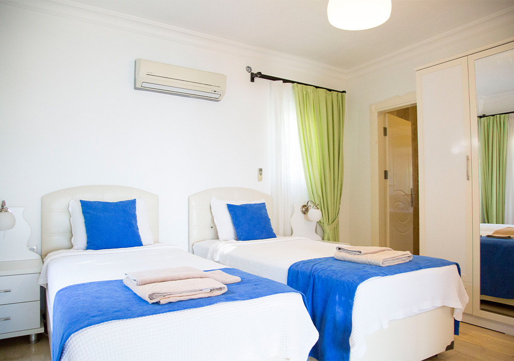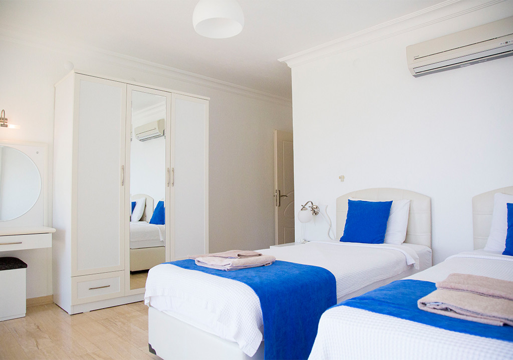 Detayları; İki adet tek kişilik yatak, makyaj masası, komodin, klima, elbise dolabı, banyo ve tuvalet yer almaktadır.