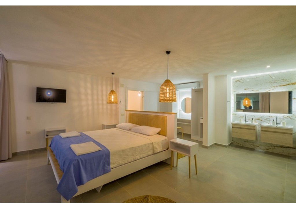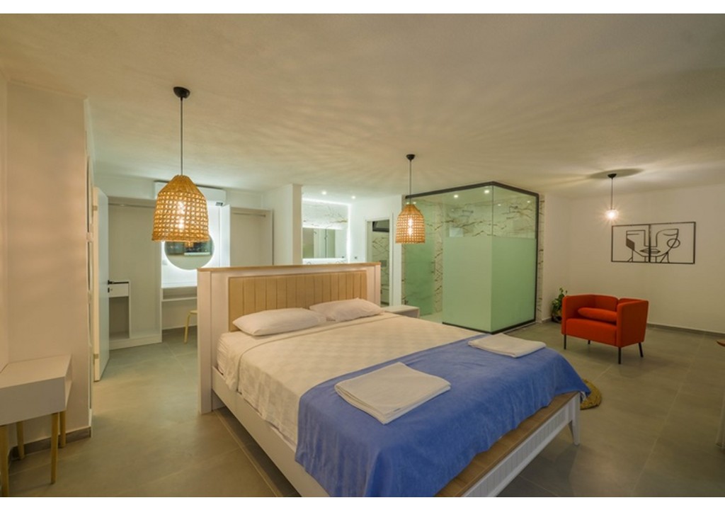 Detayları; Çift kişilik yatak, makyaj masası, komodin, klima, elbise dolabı, banyo ve tuvalet, bulunmaktadır.