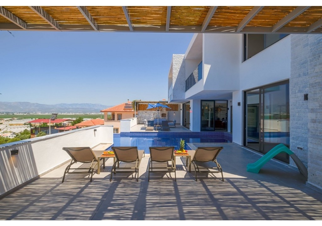 NOT: Villamızın havuz terası belli noktalardan görünmektedir. Tam korunaklı seçenek isteyen misafirler için uygun değildir.