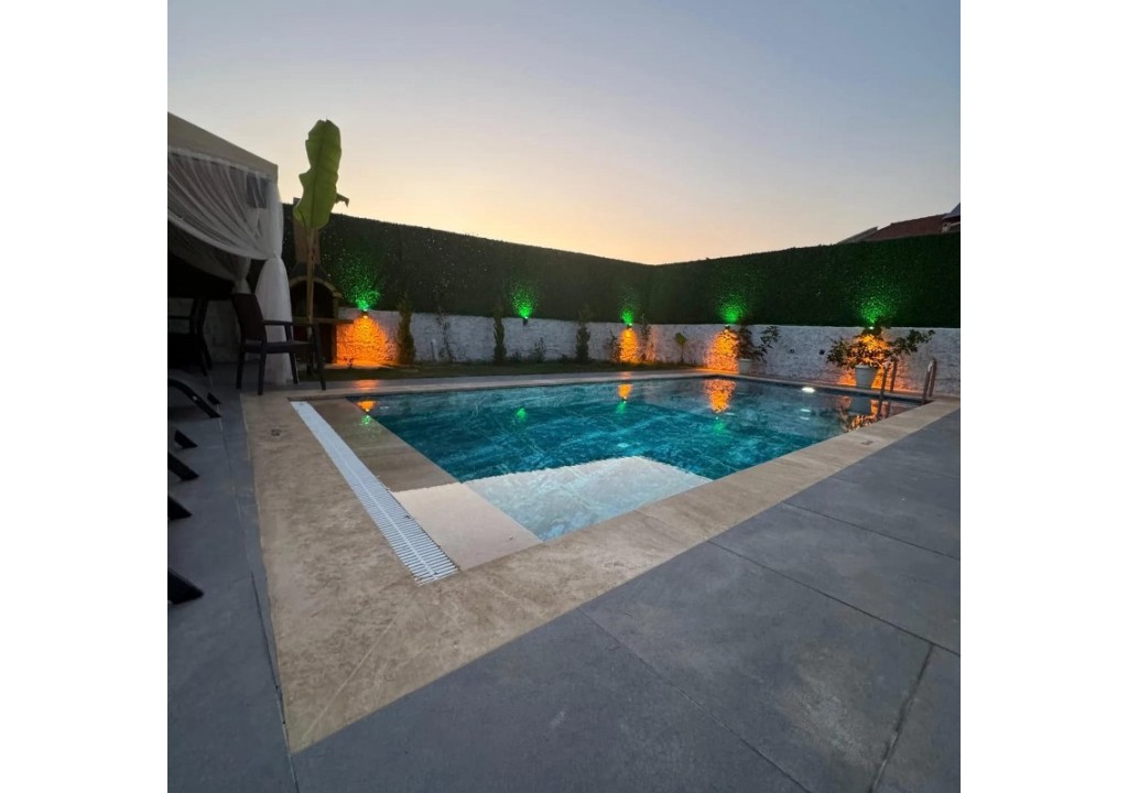 Detayları; Oturma grubu, Uydu TV (LCD), Klima, 8 kişilik yemek masası, Havuz terasına çıkış,
