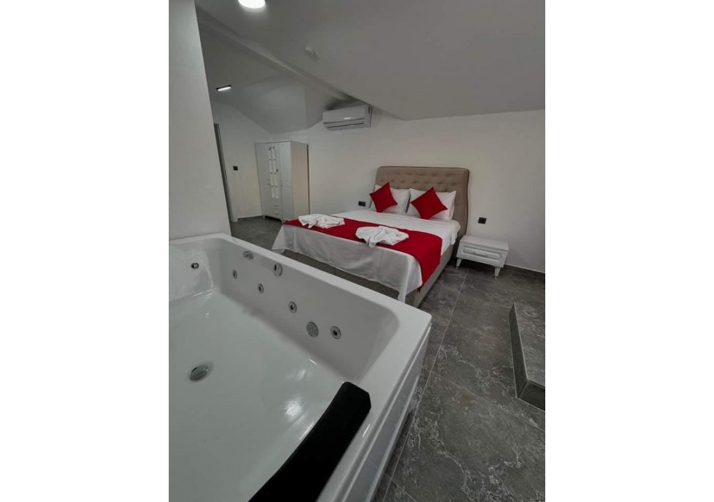 Detayları; Çift kişilik yatak, makyaj masası, komidin, klima, elbise dolabı, jakuzi, banyo ve tuvalet bulunmaktadır.