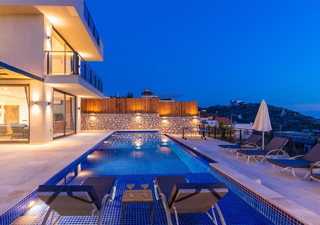 Villa Azde ,Kalkan'ın Kördere bölgesinde konumlandırılmış olan 3 yatak odalı bir tatil villasıdır.Modern dizayna sahip olan villamız muhteşem deniz manzarasına sahiptir.Havuz ve bahçe kısmı dışarıdan görünmemektedir.Muhafazakar aile,balayı çiftleri ve kalabalık aileler için ideal bir seçimdir.