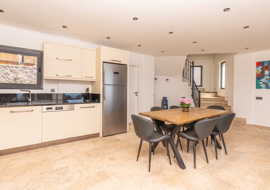 Detayları; Buz dolabı, Bulaşık makinesi, Fırın 4’lü Ocak (ankastre), Mikrodalga fırın, Elektrikli su ısıtıcı, 6 kişilik yemek takımı, Tava, Tencereler, Çatal bıçak vb.