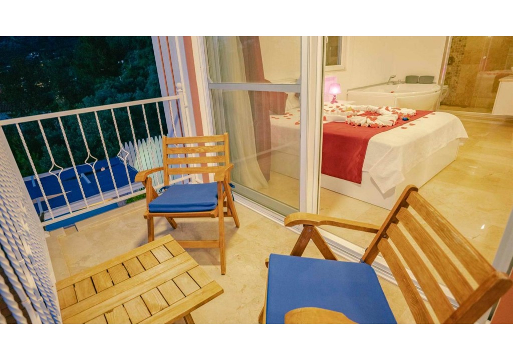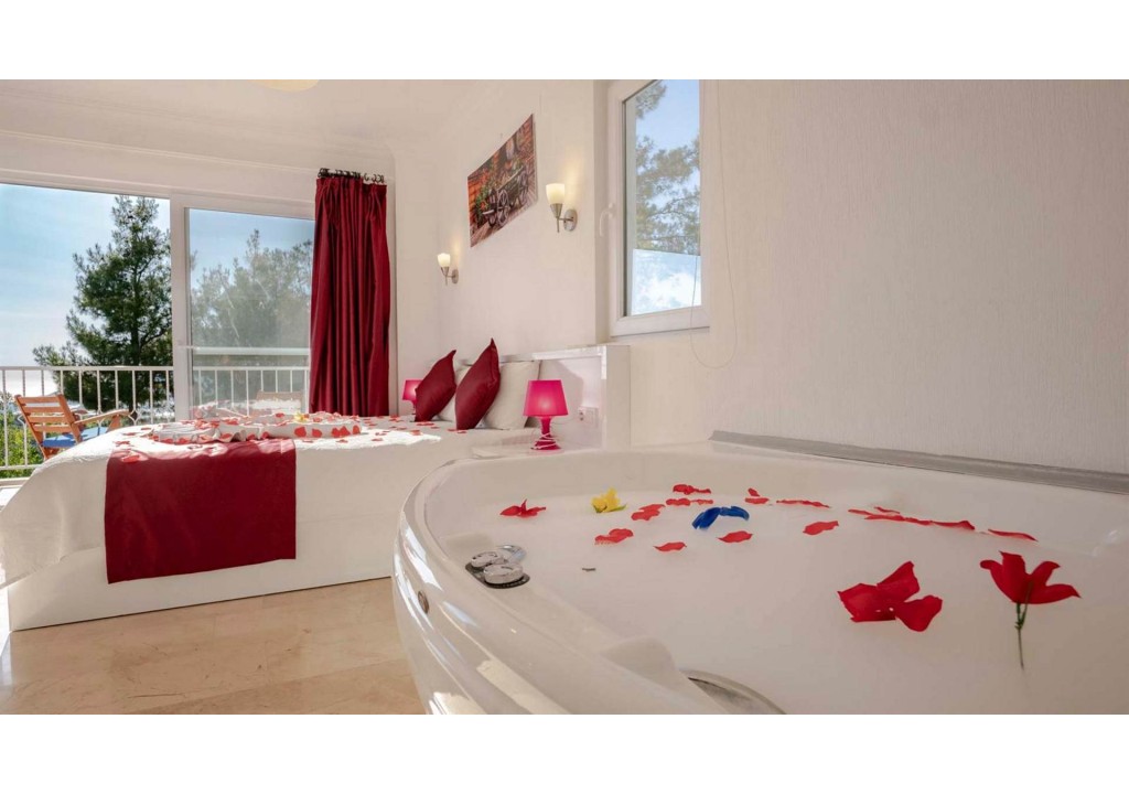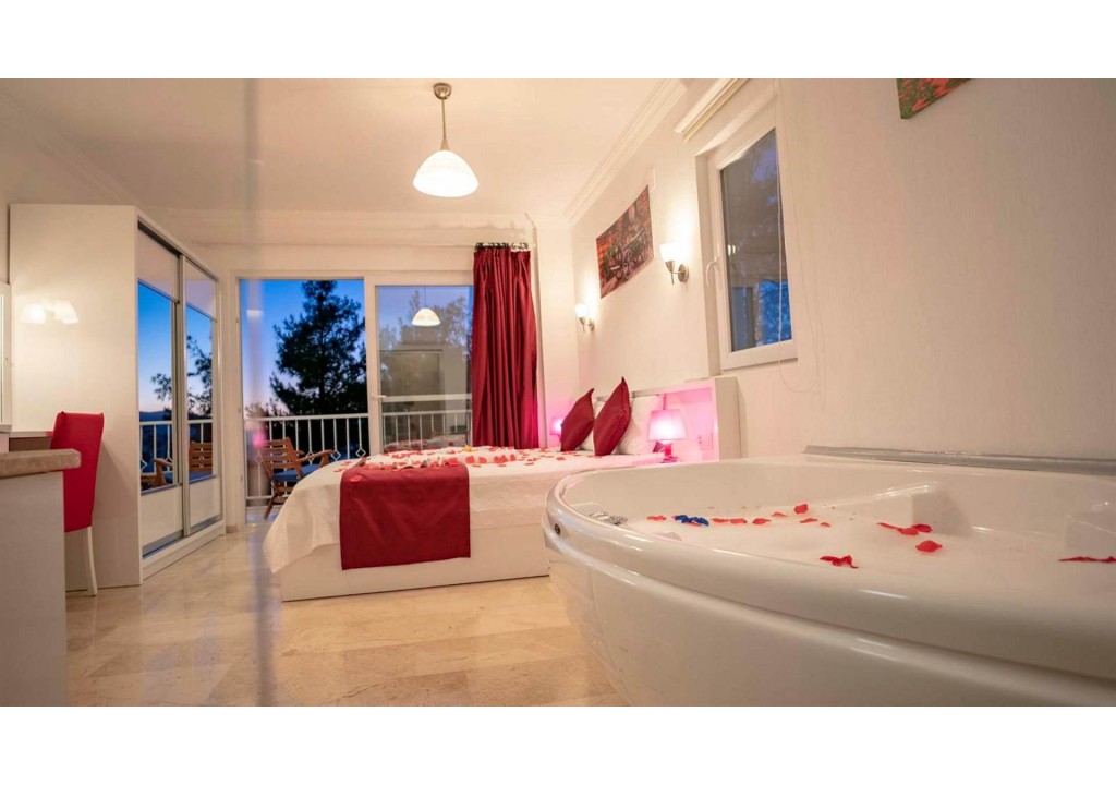 Detayları; Çift kişilik yatak, komodin, klima, elbise dolabı,jakuzi, banyo ve tuvalet bulunmaktadır.
