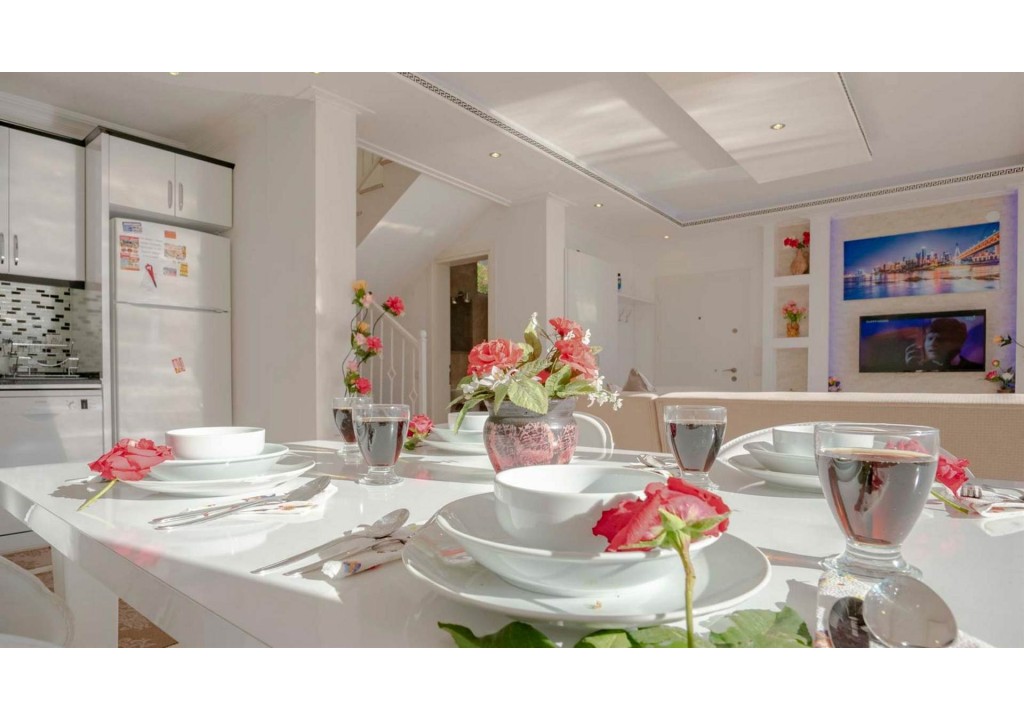 Detayları; Amerikan tarzı mutfak içerisinde buzdolabı, bulaşık makinesi, çamaşır makinesi, fırın, kahve makinesi, 4’lü ocak (ankastre), mikrodalga fırın, elektrikli su ısıtıcı, tava & tencere vb. mutfak ekipmanları ve yemek takımı bulunmaktadır.