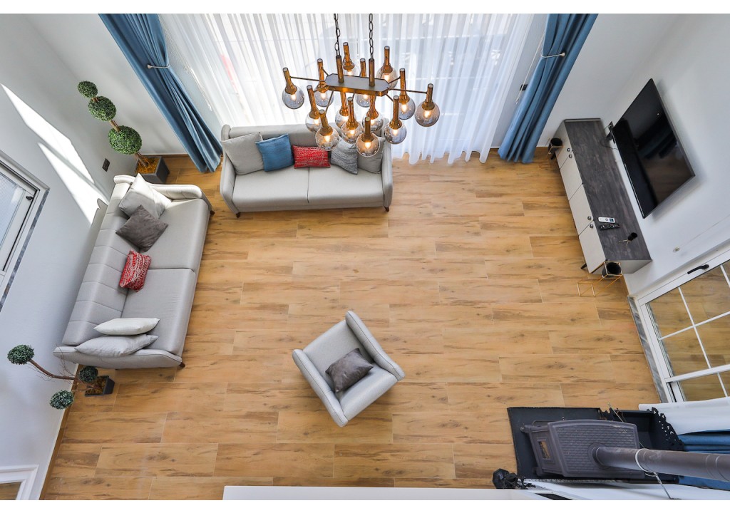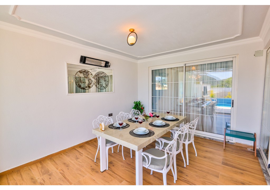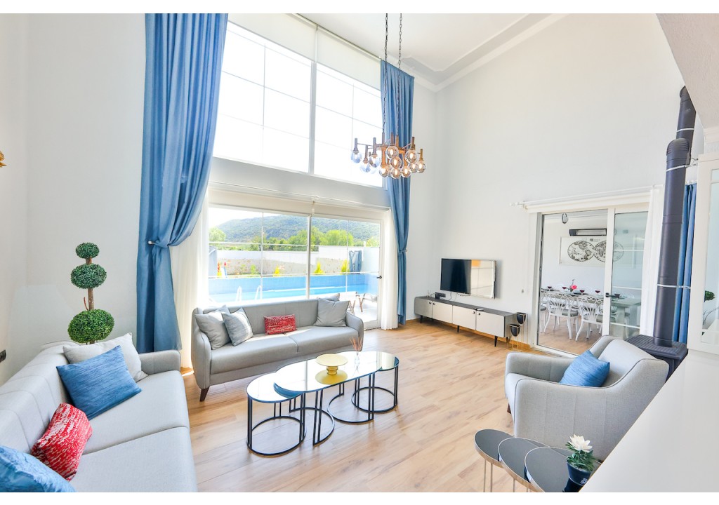 Detayları; Oturma grubu, Uydu TV (LCD), Klima, Havuz terasına çıkış,