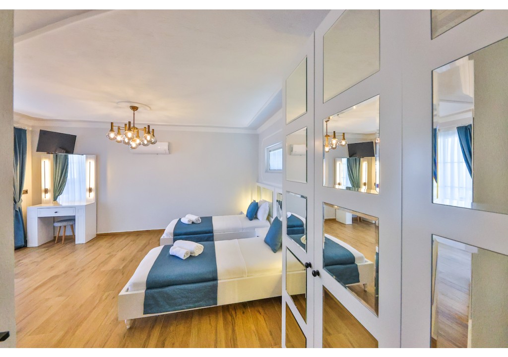 Detayları; İki adet tek kişilik yatak, komodin, klima, elbise dolabı, banyo ve tuvalet bulunmaktadır.