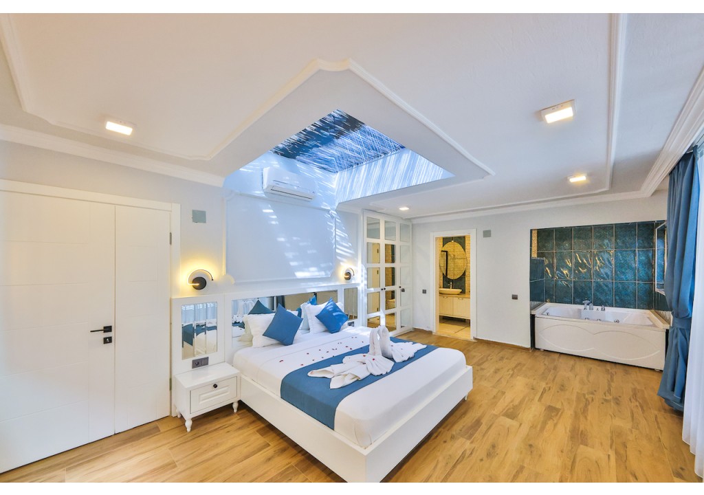 Detayları; Çift kişilik yatak, komodin, klima, elbise dolabı, jakuzi, banyo ve tuvalet bulunmaktadır.
