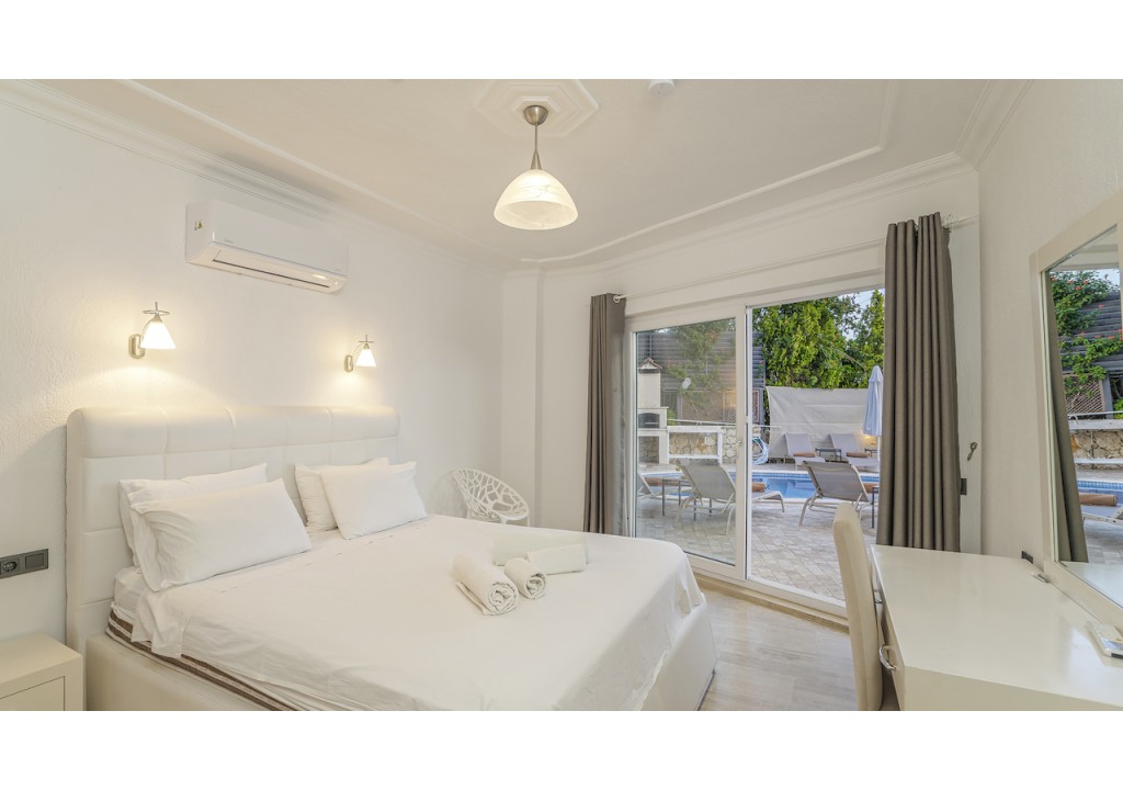 Detayları; 1 adet çift kişilik yatak, elbise dolabı, komodin, makyaj masası, klima, banyo&Wc, havuz terasına çıkış bulunmaktadır.