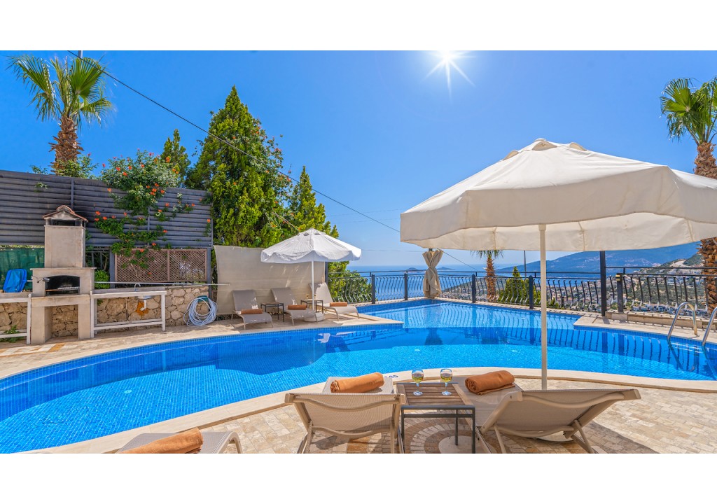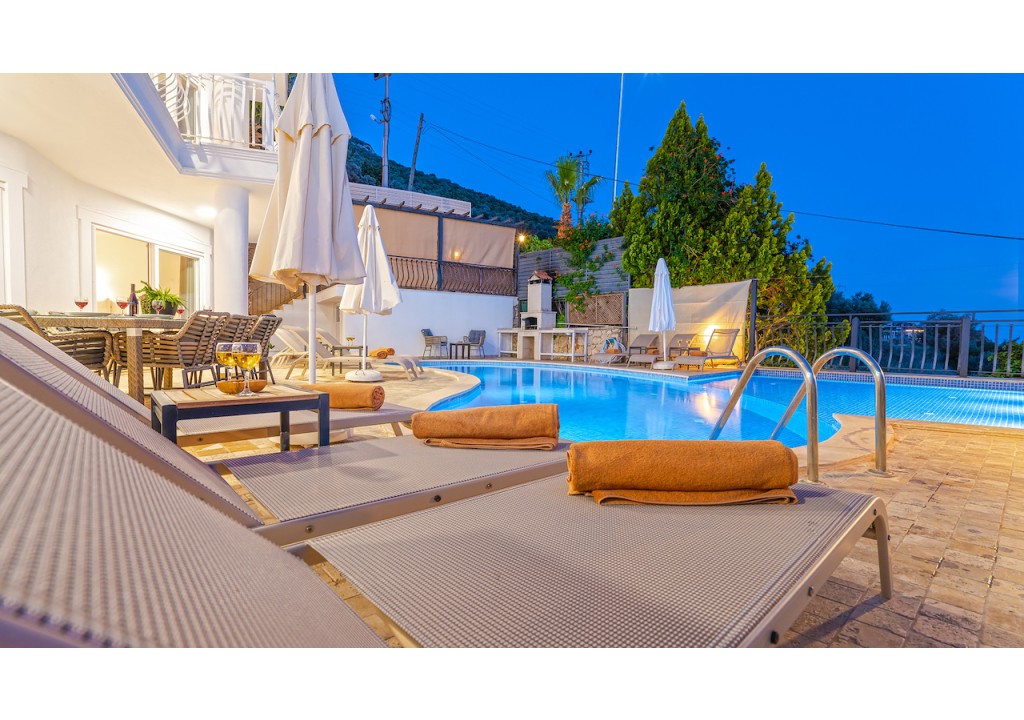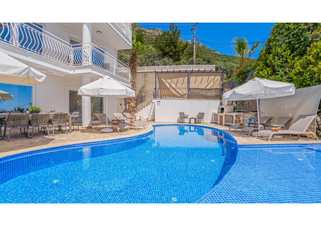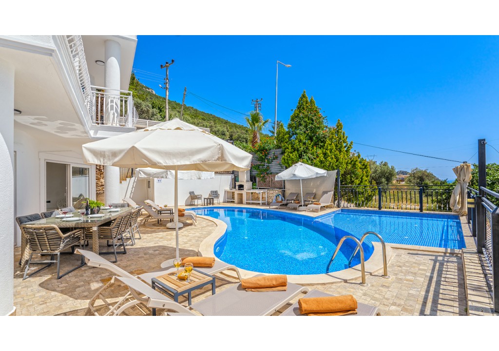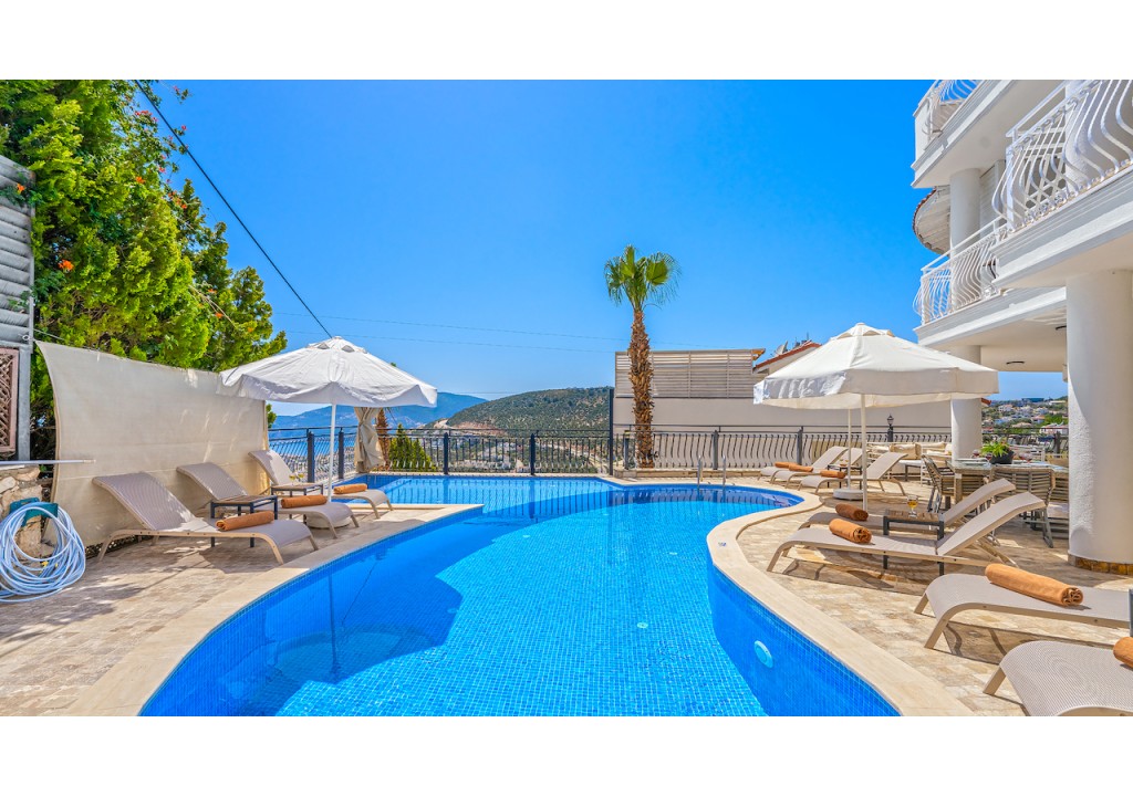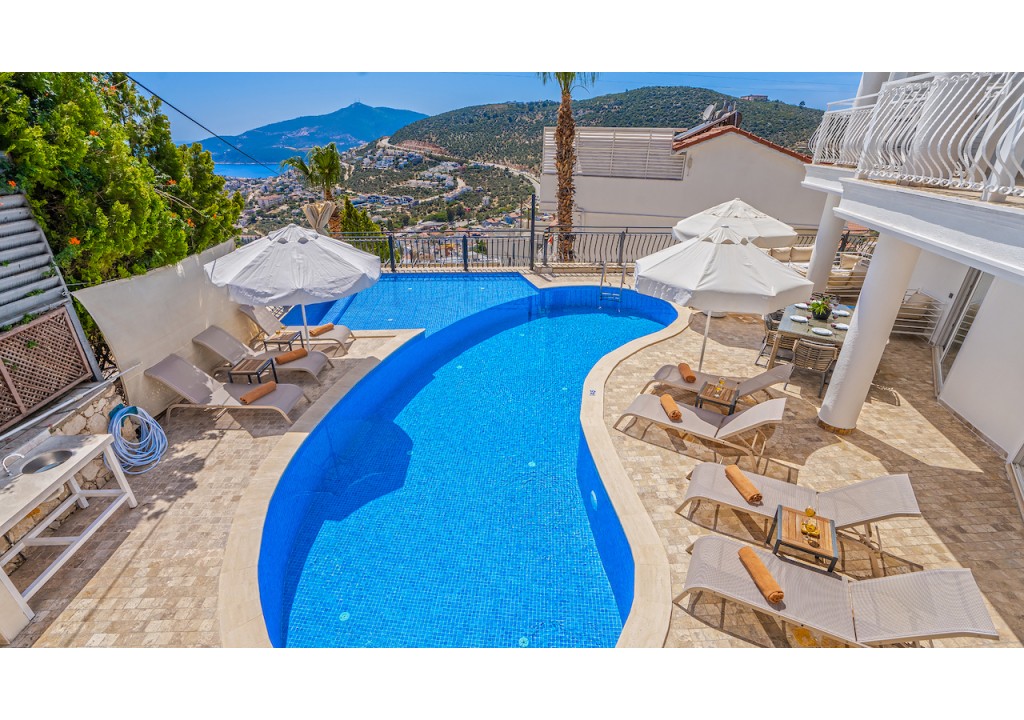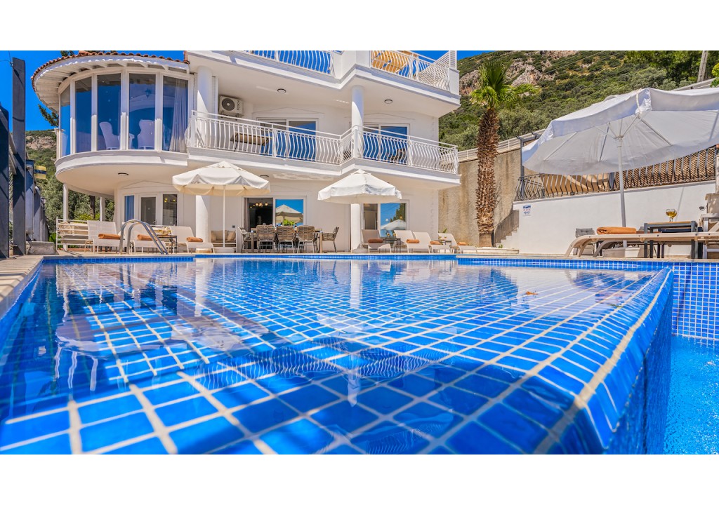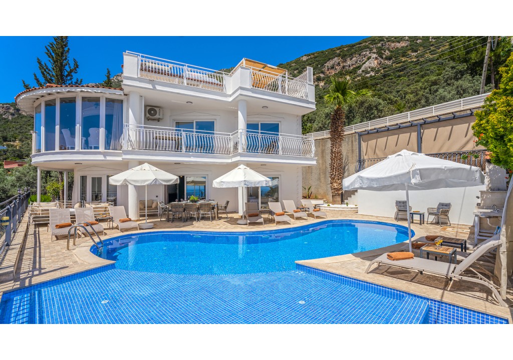 Villa Beyaz, Kalkan Kızıltaş mevkiinde konumlanan havuzu tam korunaklı villamızdır. Konumundan dolayı güzel bir deniz manzarasına karşı yer alan villamızın odalarından ve salonundan bu manzarayı izleyebilirsiniz. Kalabalık gruplar için ideal olan villamız, rahat ve ferah olacak şekilde tasarlanmıştır.