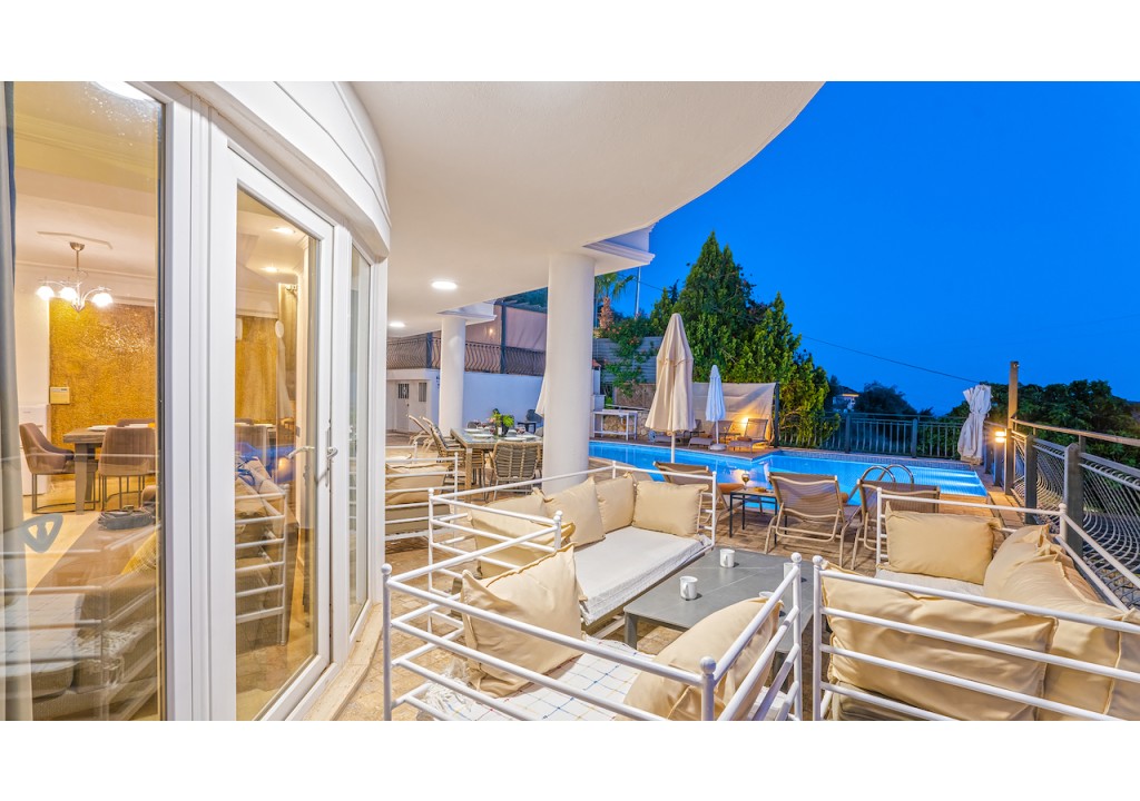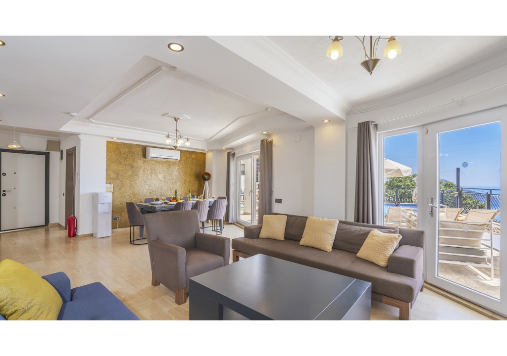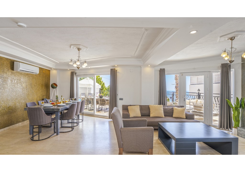 Detayları; Konforlu oturma grubu, Tv, Şömine, uydu alıcı, Wifi, havuz terasına çıkış bulunmaktadır.
