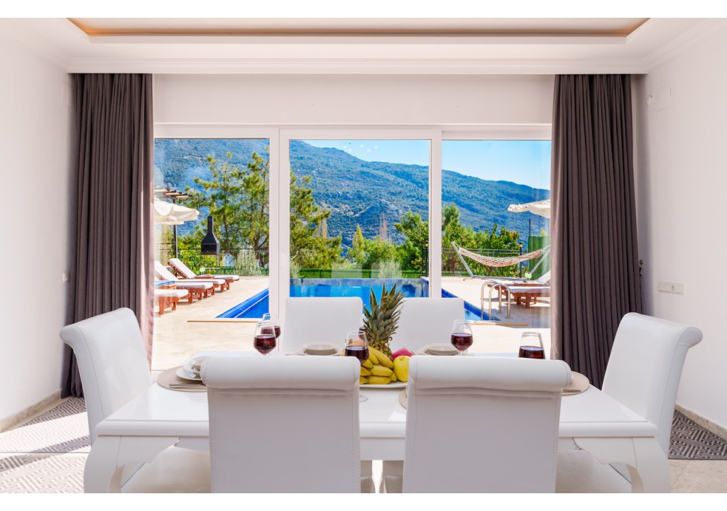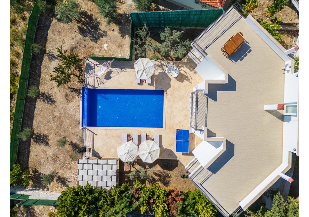 Detayları; Oturma grubu, Uydu TV (LCD), Klima, 8 kişilik yemek masası, Havuz terasına çıkış,