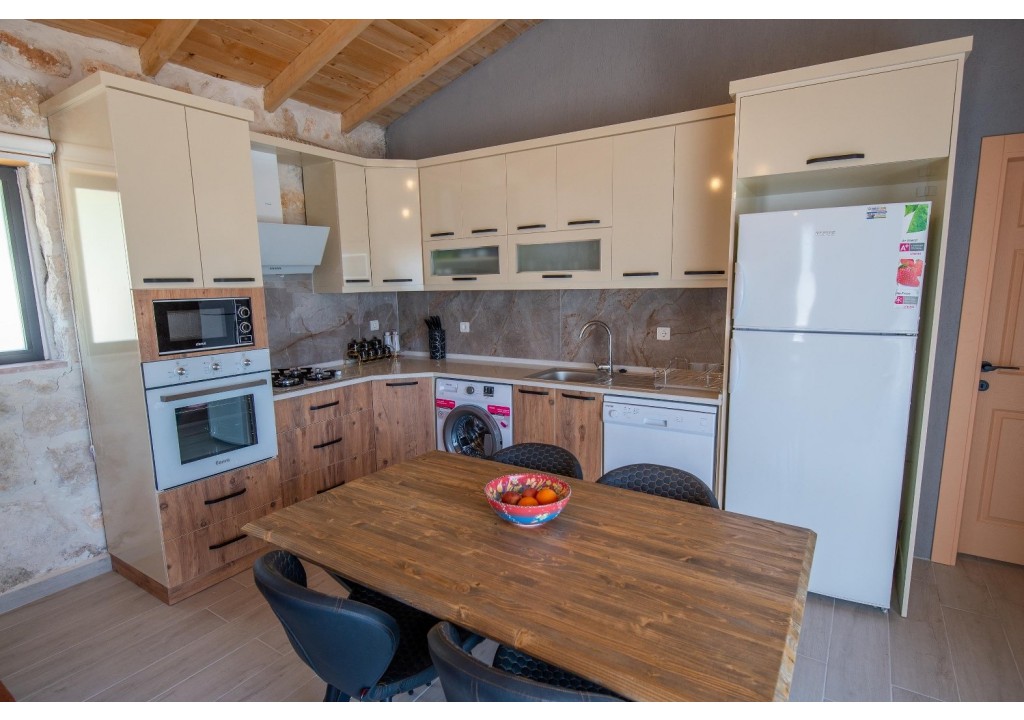 Detayları; Buzdolabı, Bulaşık makinesi, Fırın 4’lü Ocak (ankastre), Mikrodalga fırın, Elektrikli su ısıtıcı, 2 kişilik yemek takımı, Tava, Tencereler, Çatal bıçak vb.