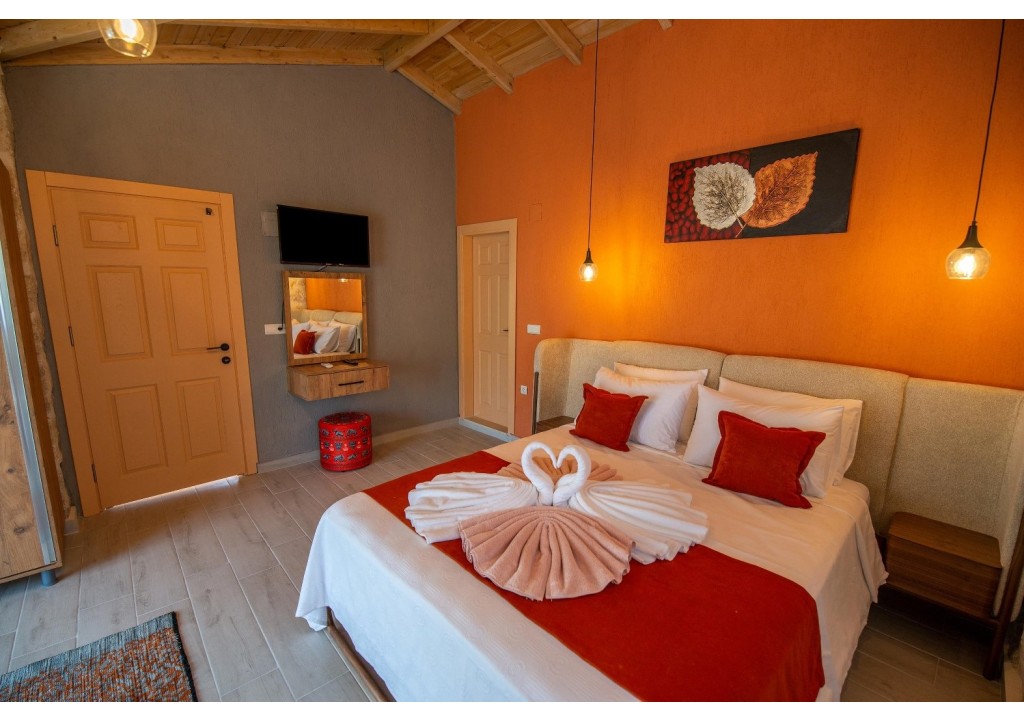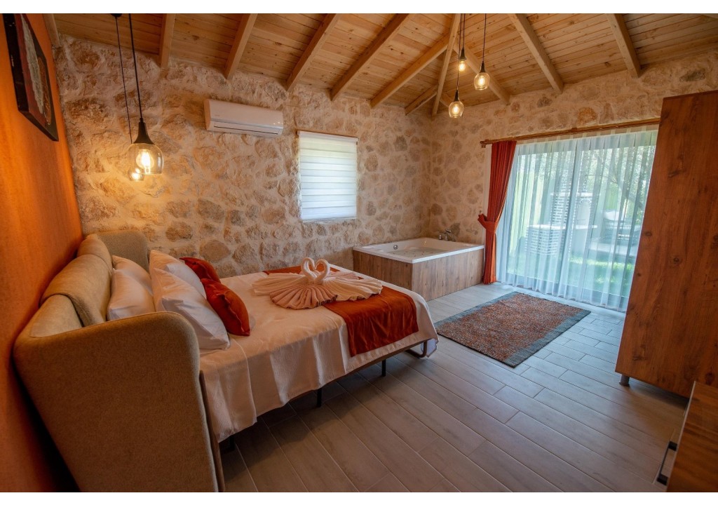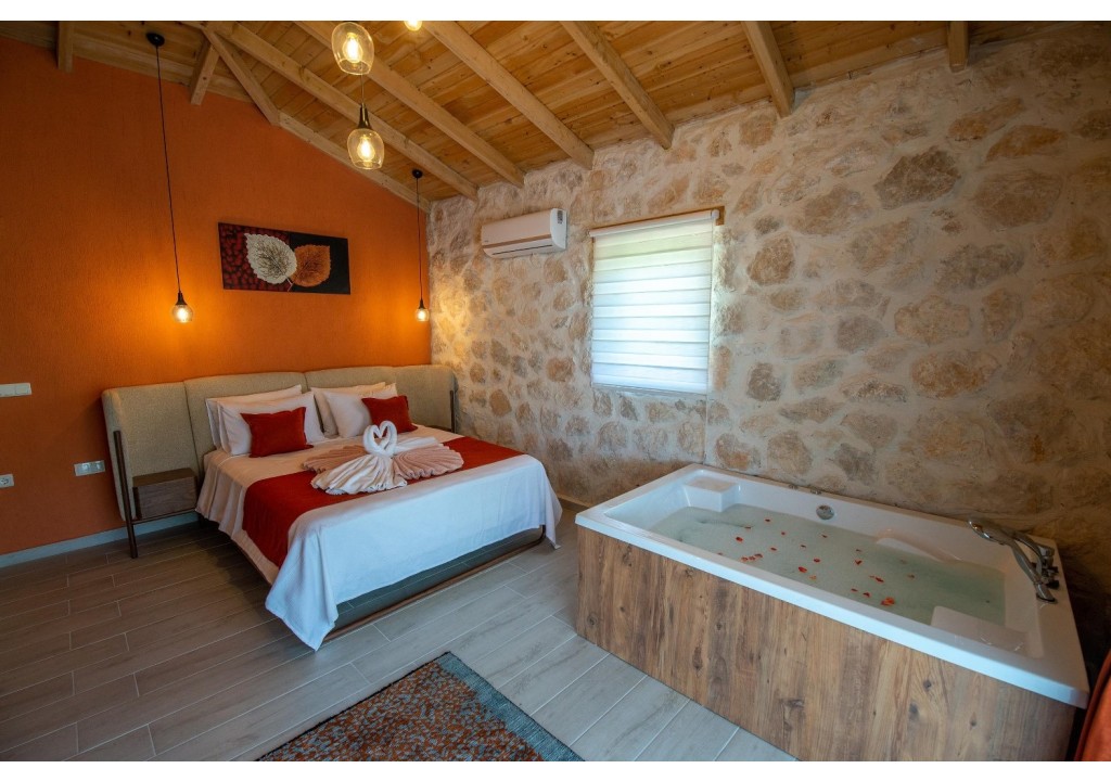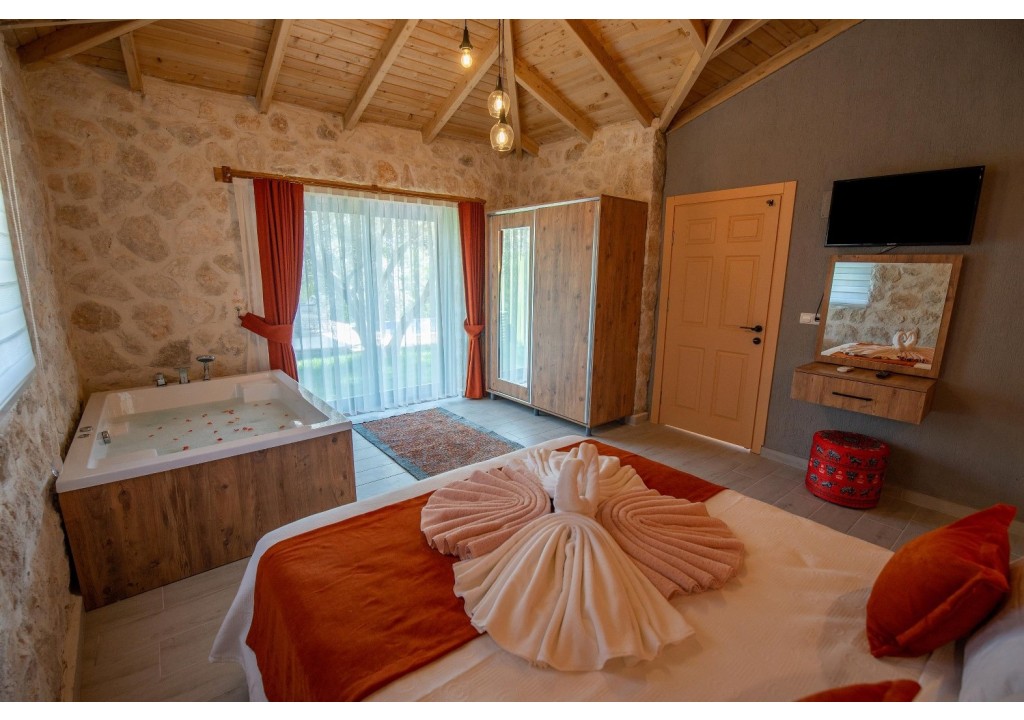 Detayları; Çift kişilik yatak, makyaj masası, komidin, klima, elbise dolabı, jakuzi, banyo ve tuvalet bulunmaktadır.