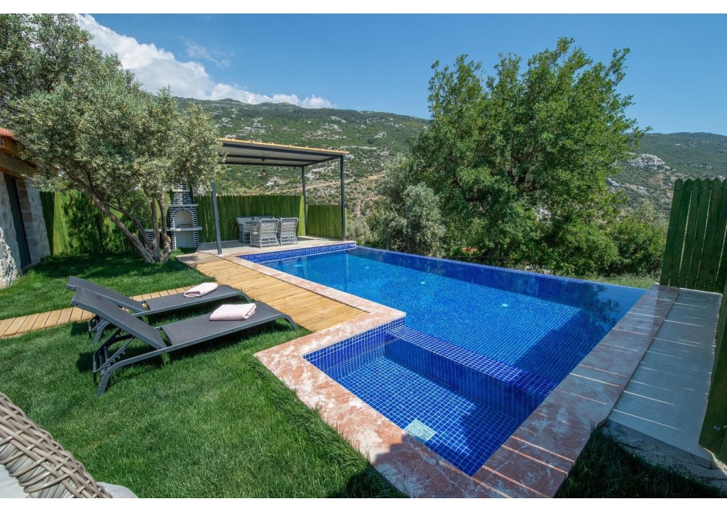 Kalkan’ın İslamlar köyünde, yeşillikler içinde konumlanan Villa Beyina, tek yatak odalı ve havuz alanı dışarıdan görünmeyen muhafazakâr bir villadır. Sakin ve huzurlu bir tatil arayan misafirlerin yanı sıra balayı çiftleri için de ideal bir konaklama seçeneği sunmaktadır.