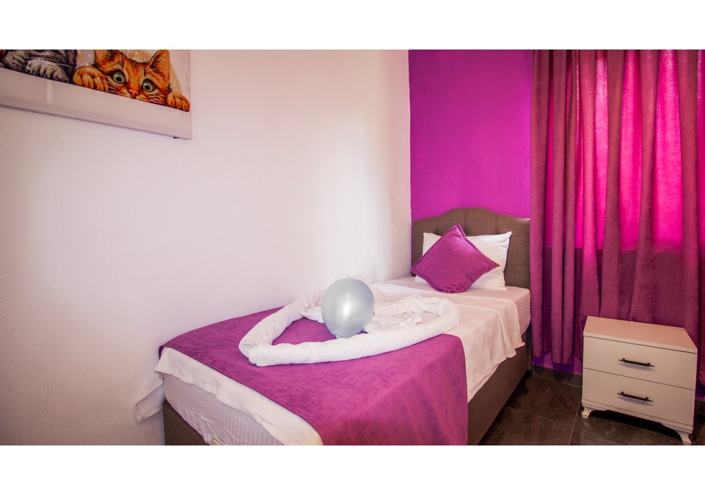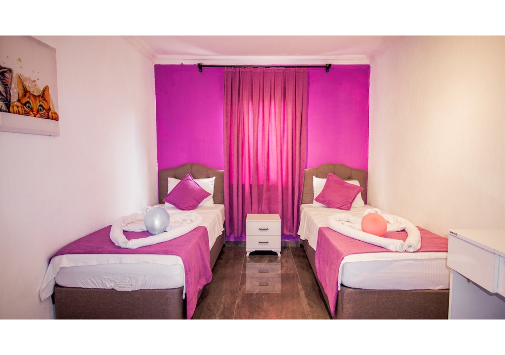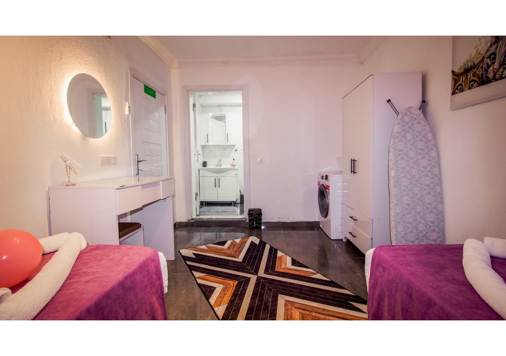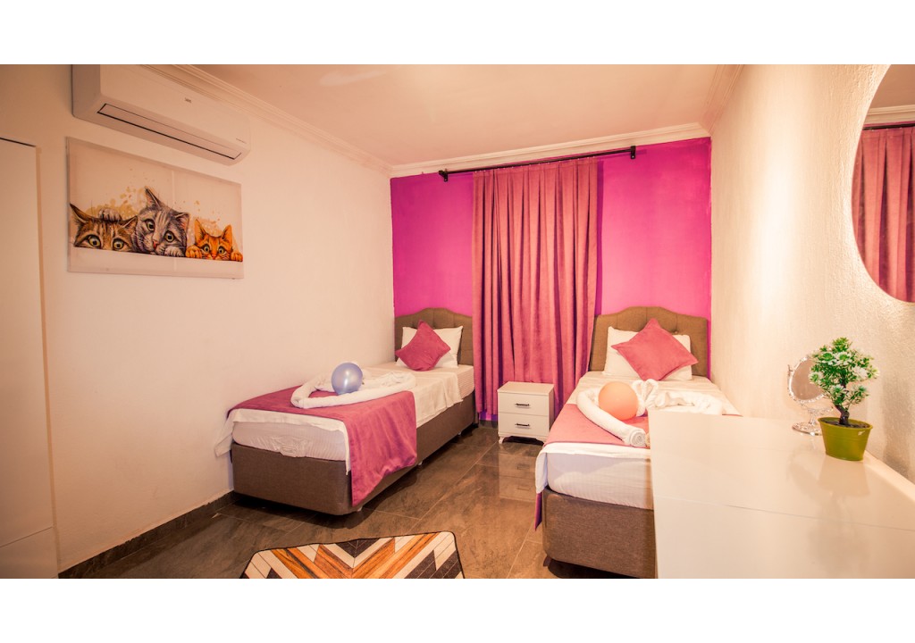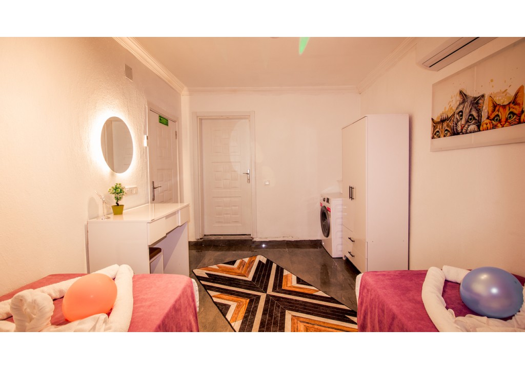 Detayları; İki adet tek kişilik yatak, makyaj masası, komodin, klima, elbise dolabı, banyo ve tuvalet bulunmaktadır.