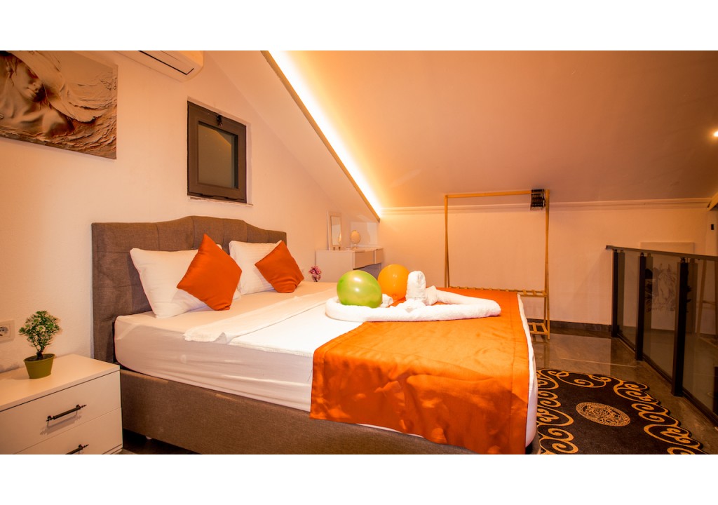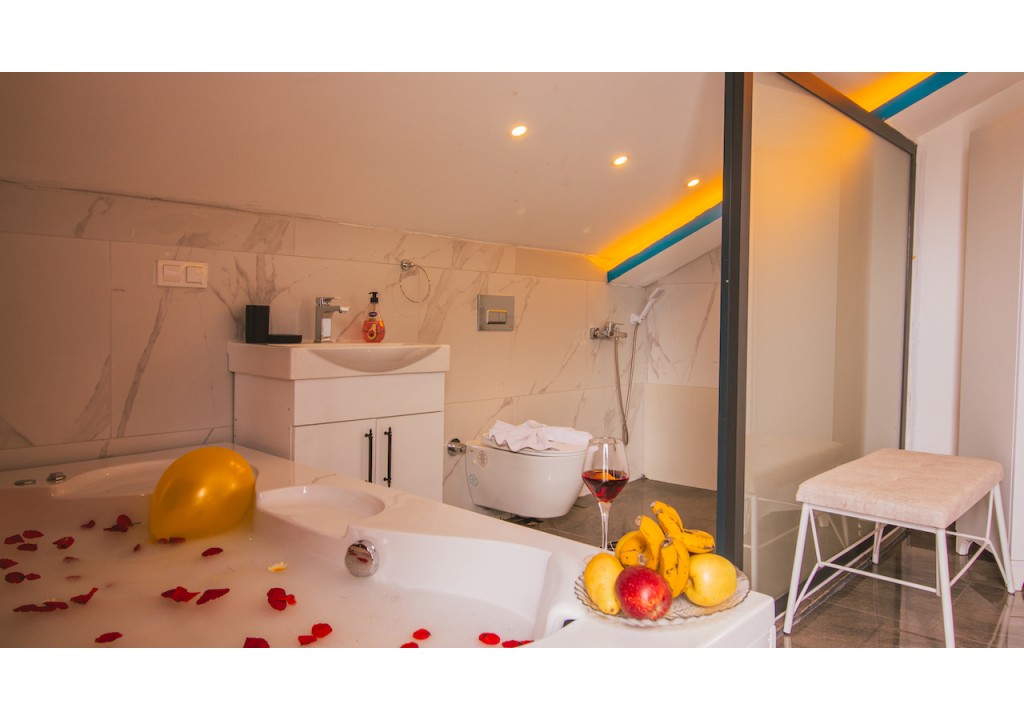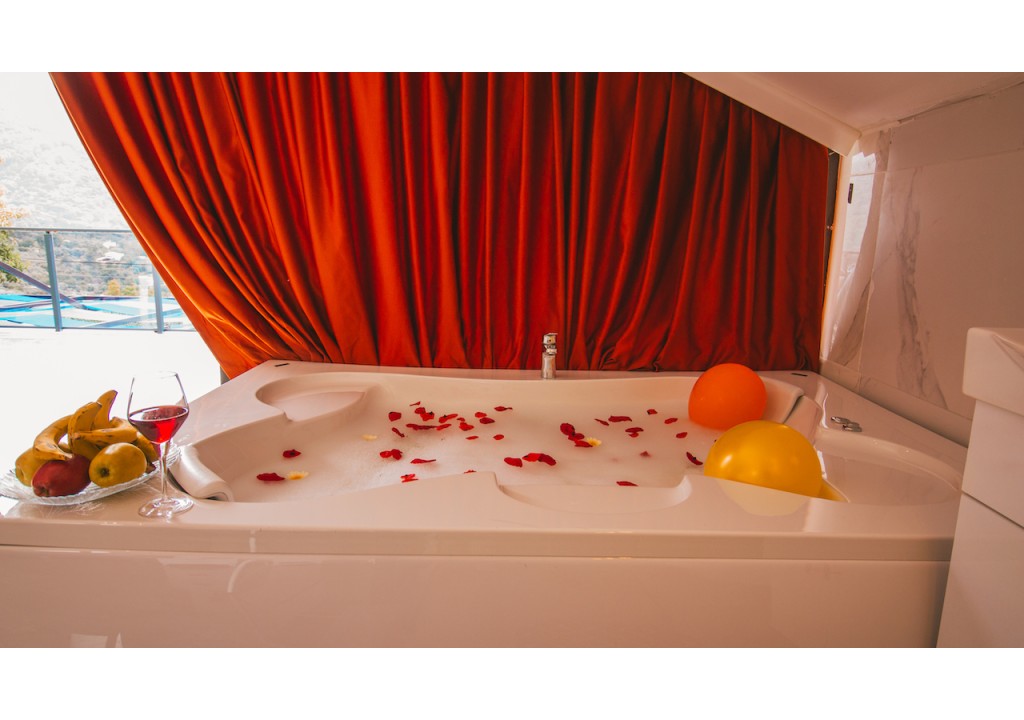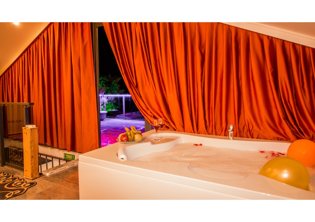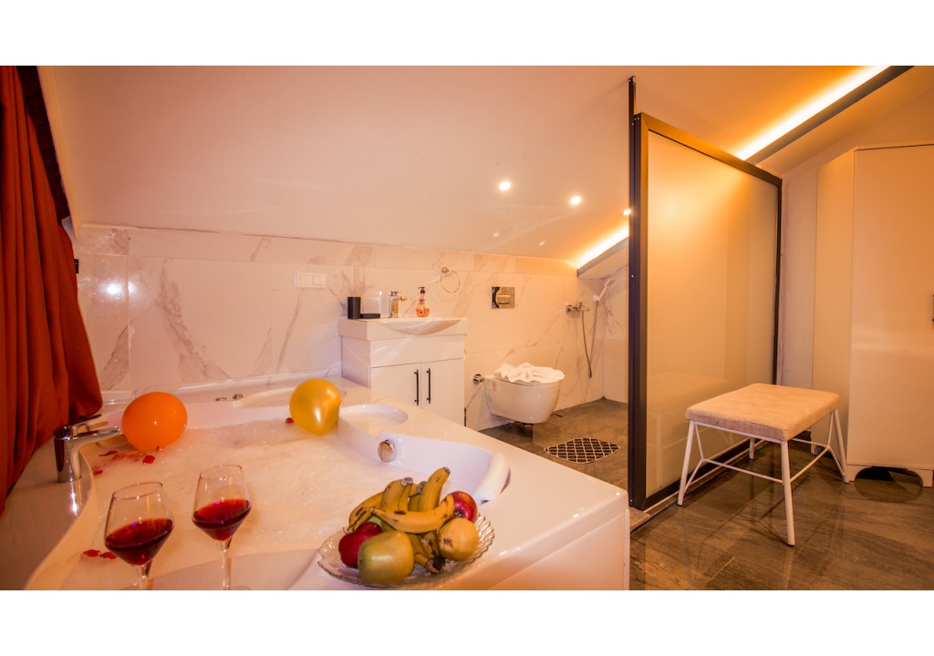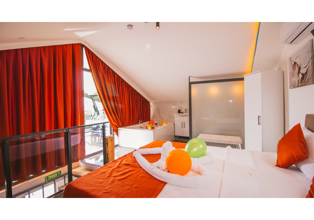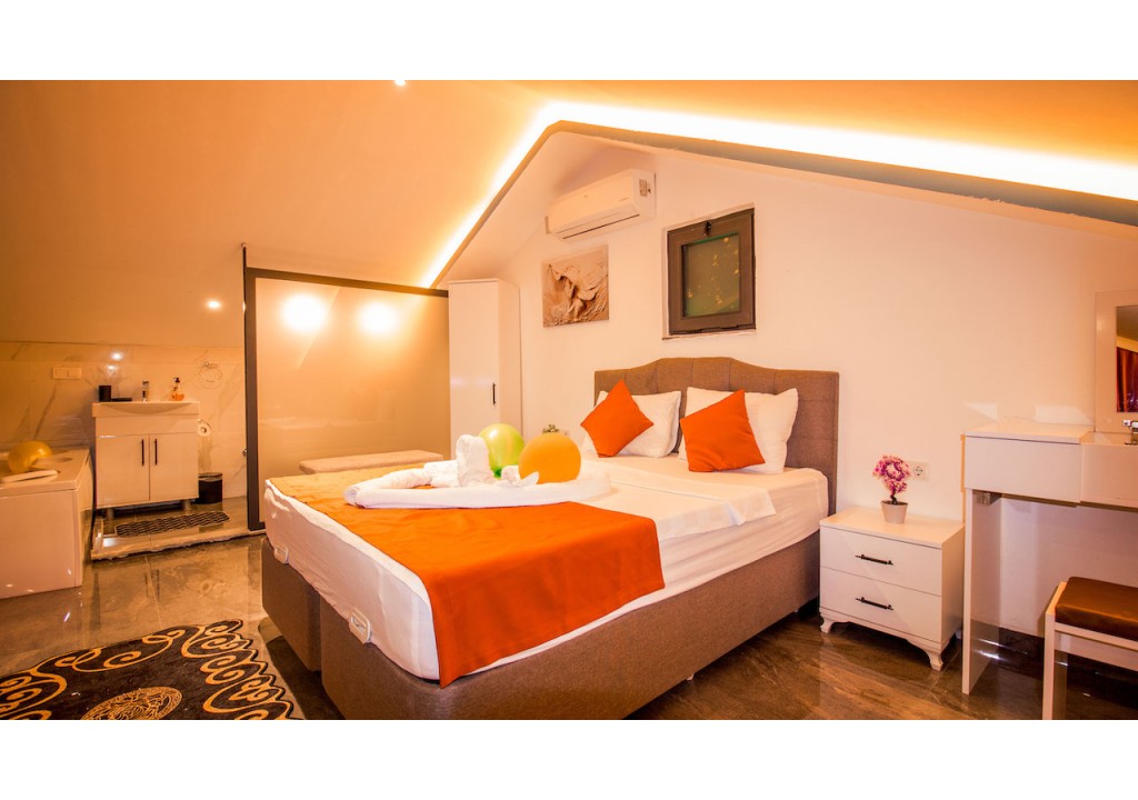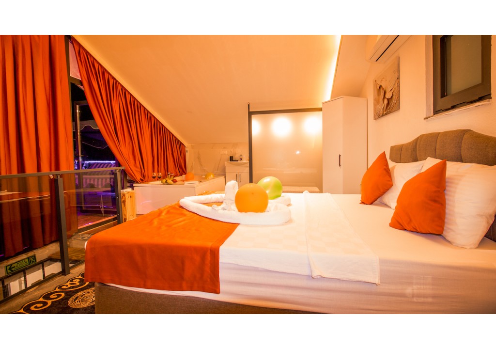 Detayları; Çift kişilik yatak, makyaj masası, komodin, klima, elbise dolabı, jakuzi , banyo ve tuvalet bulunmaktadır.