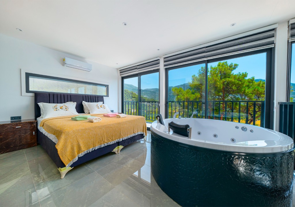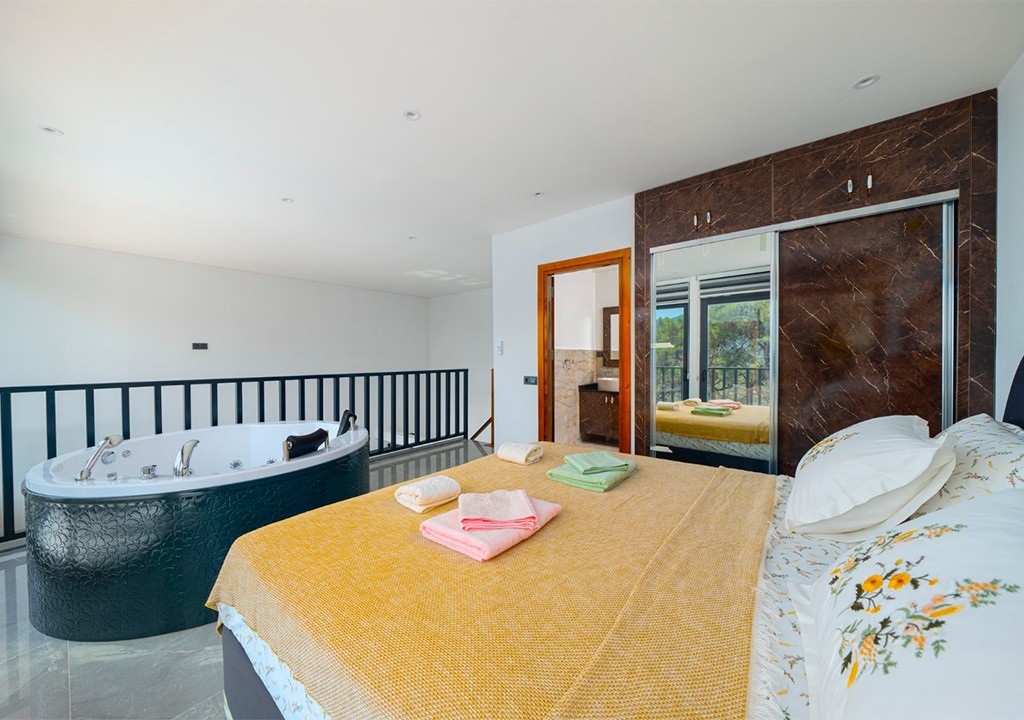 Detayları; Çift kişilik yatak, makyaj masası, komodin, klima, elbise dolabı, jakuzi, banyo ve tuvalet bulunmaktadır.