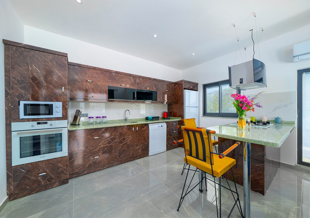 Detayları; Buzdolabı, Bulaşık makinesi, Fırın 4’lü Ocak (ankastre),Elektrikli su ısıtıcı, 2 kişilik yemek takımı, Tava, Tencereler, Çatal bıçak vb.