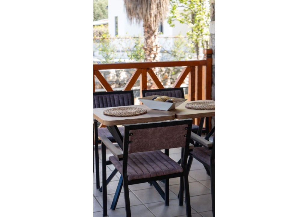 Detayları; Şezlonglar, güneş şemsiyesi, 6 kişilik yemek masası.