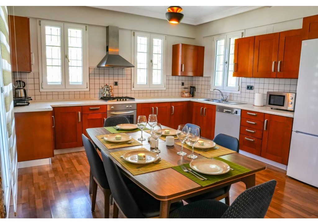 Detayları; Buz dolabı, Bulaşık makinesi, Fırın 4’lü Ocak (ankastre), Mikrodalga fırın, Elektrikli su ısıtıcı, 6 kişilik yemek takımı, Tava, Tencereler, Çatal bıçak vb.