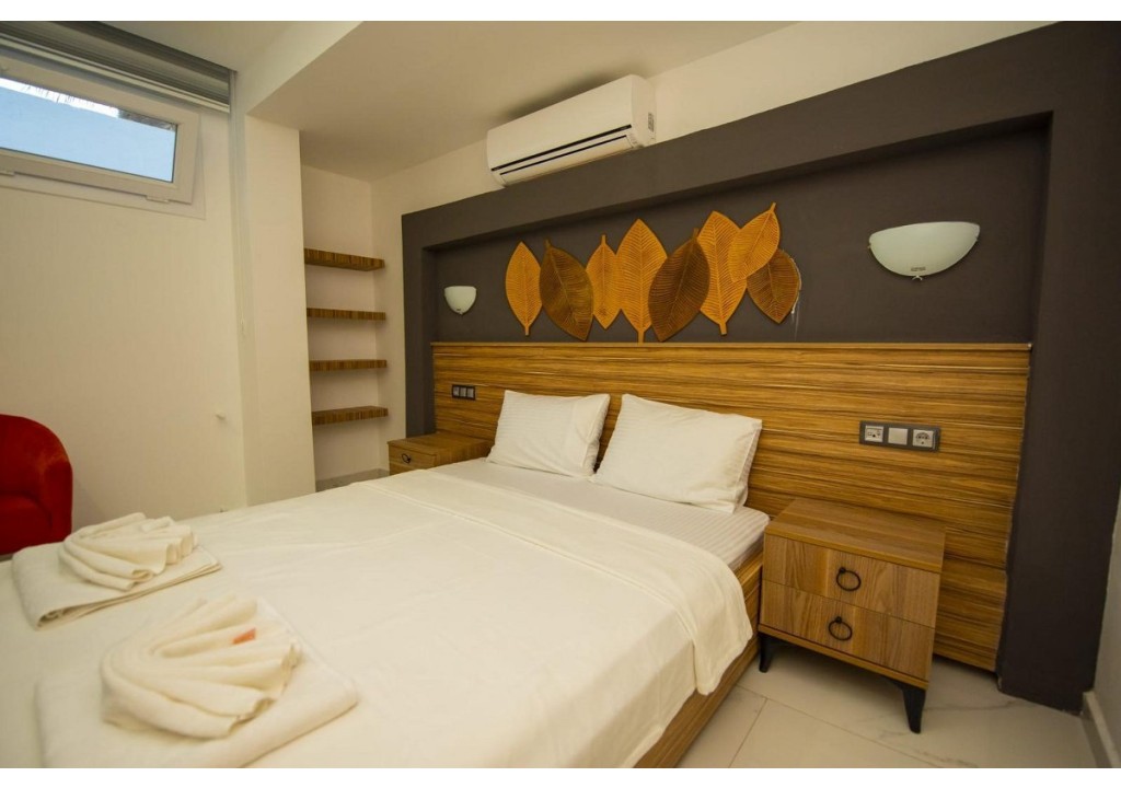 Detayları; Çift kişilik yatak, makyaj masası, komidin, klima, elbise dolabı, banyo ve tuvalet bulunmaktadır.