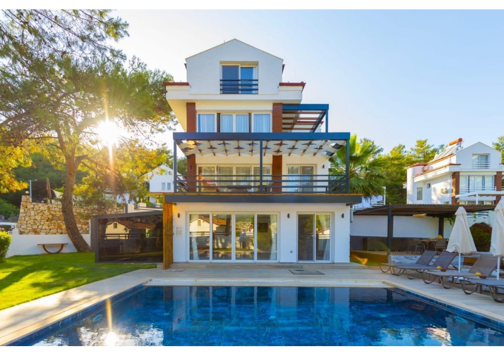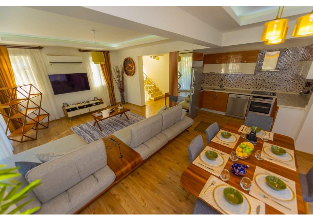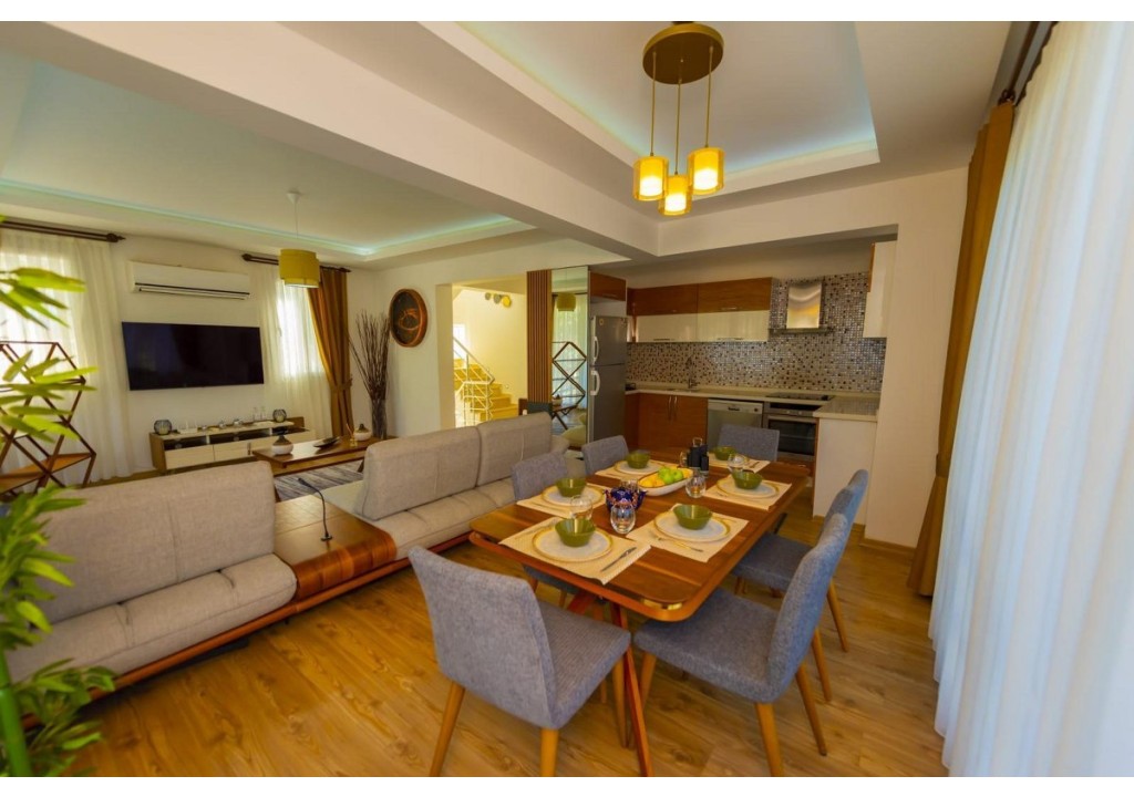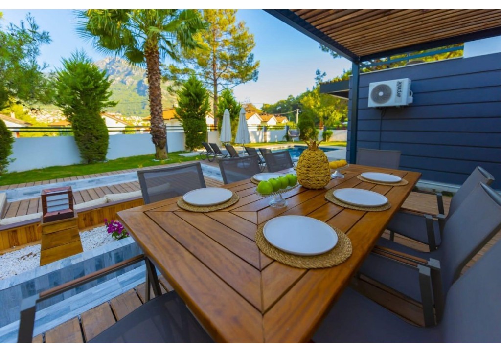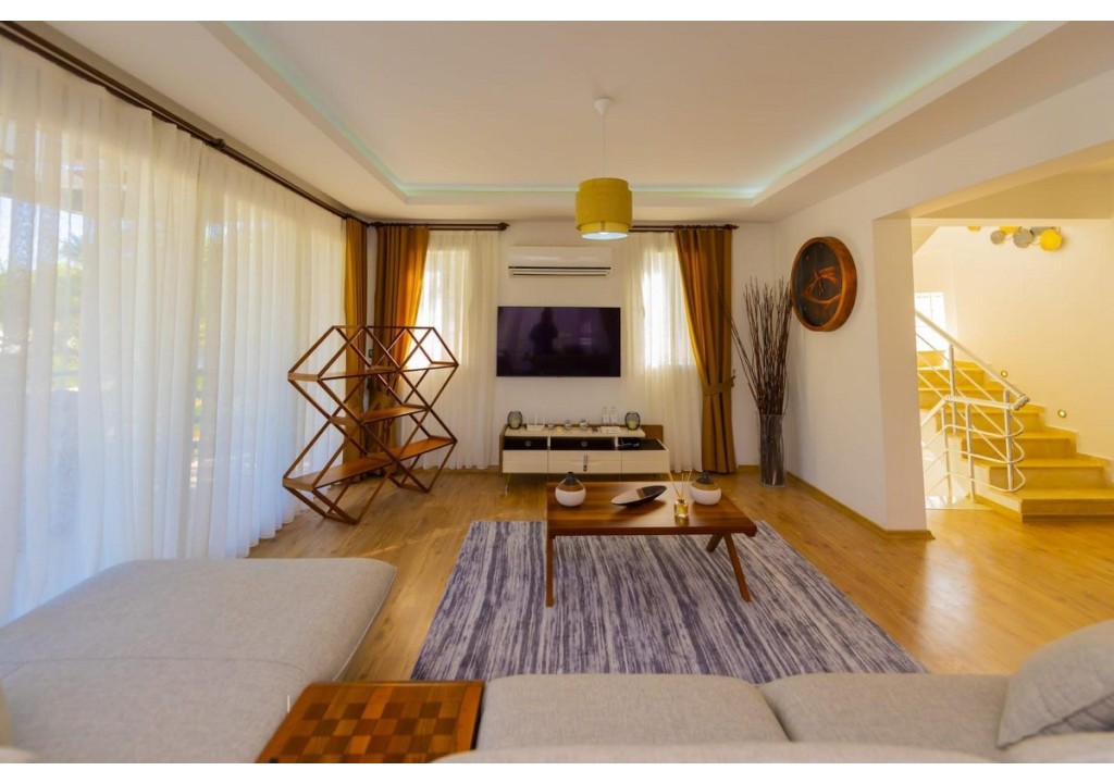 Detayları; Oturma grubu, Uydu TV (LCD), Klima, 8 kişilik yemek masası, Havuz terasına çıkış,