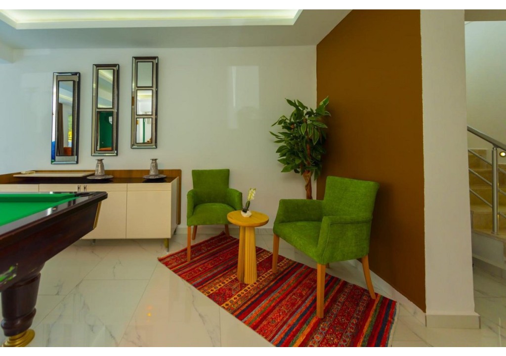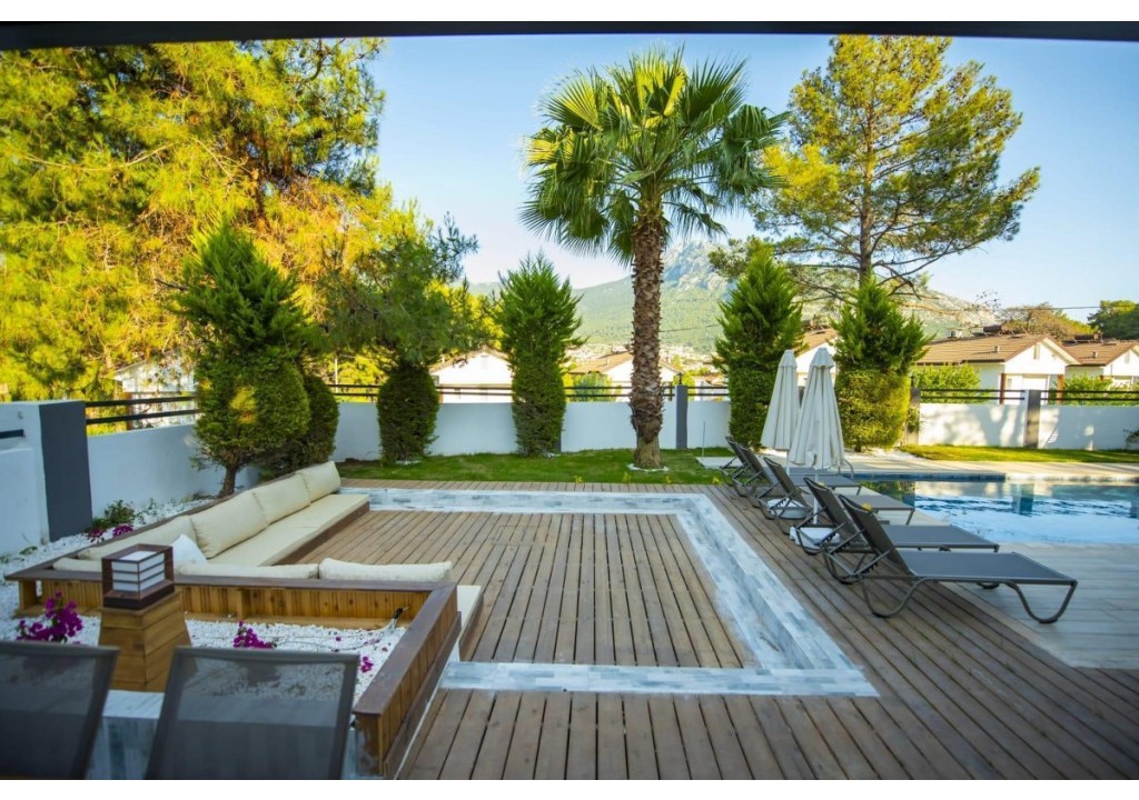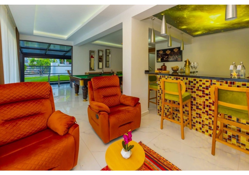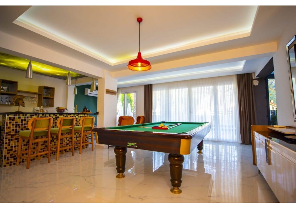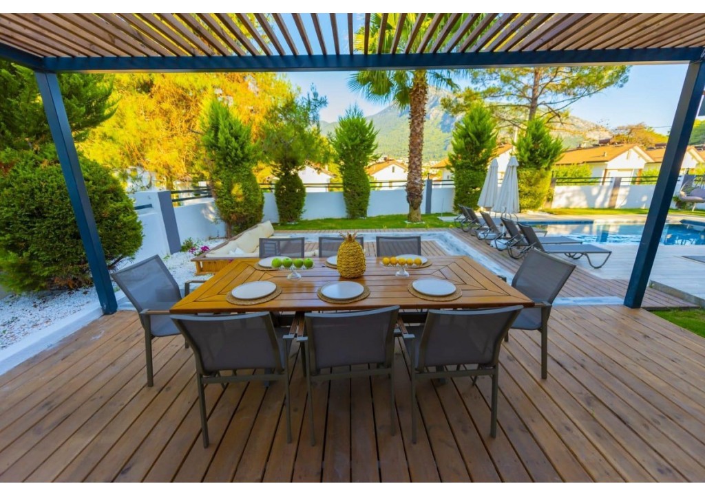 Detayları; Oturma grubu, Uydu TV (LCD), Klima, 8 kişilik yemek masası, Havuz terasına çıkış,