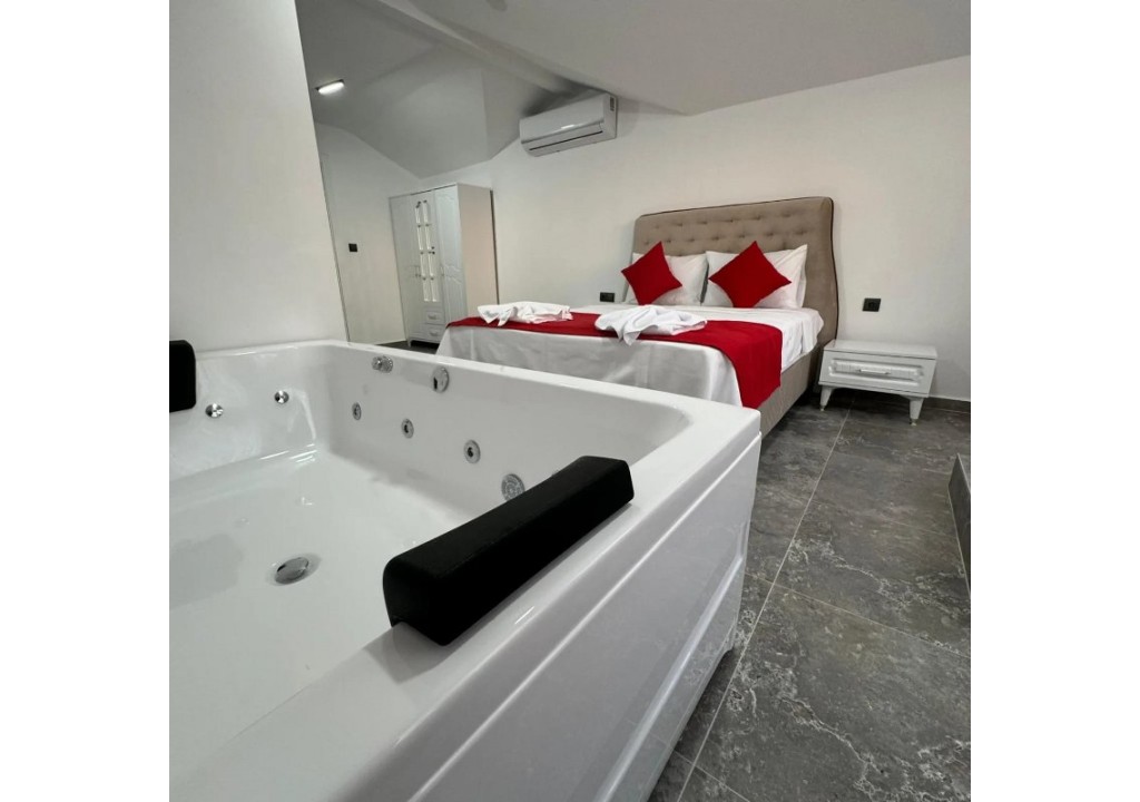Detayları; Çift kişilik yatak, makyaj masası, komidin, klima, elbise dolabı, jakuzi, banyo ve tuvalet bulunmaktadır.