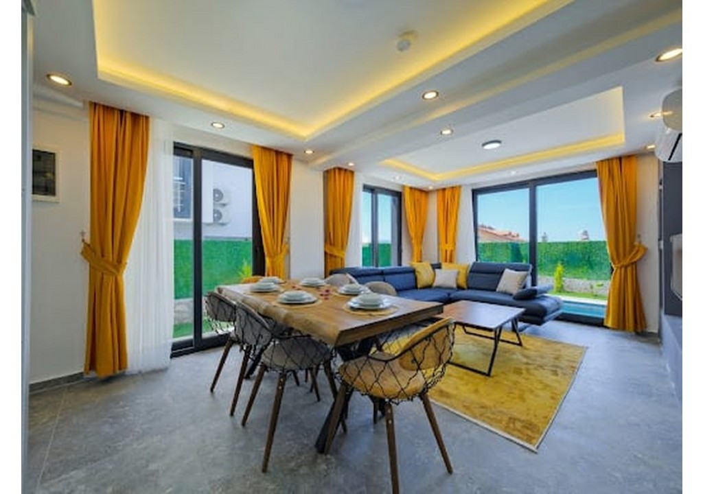 Detayları; Oturma grubu, Uydu TV (LCD), Klima, 8 kişilik yemek masası, Havuz terasına çıkış,