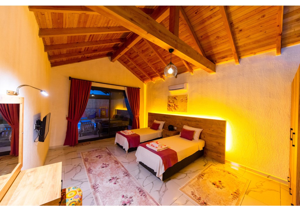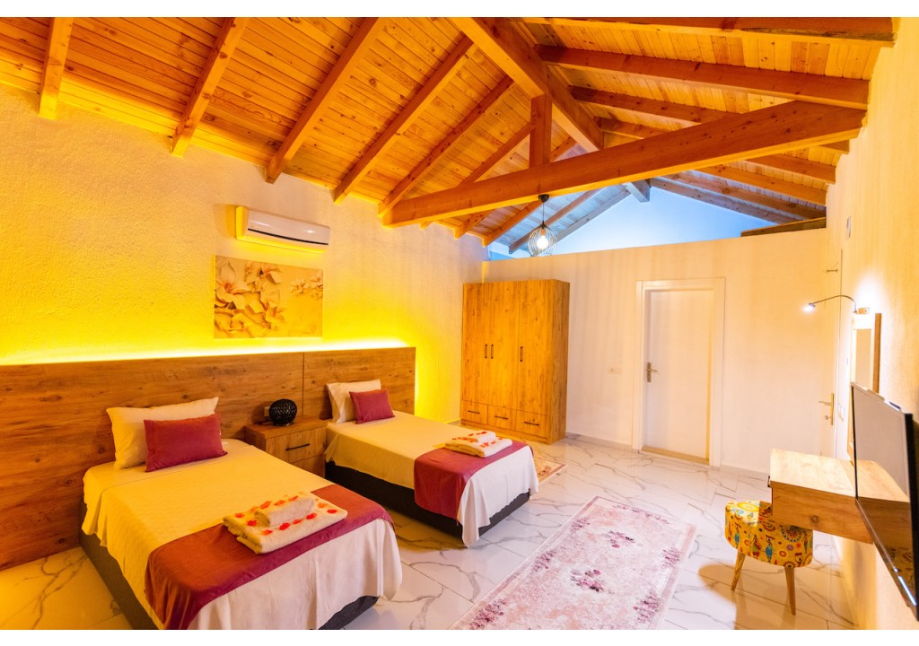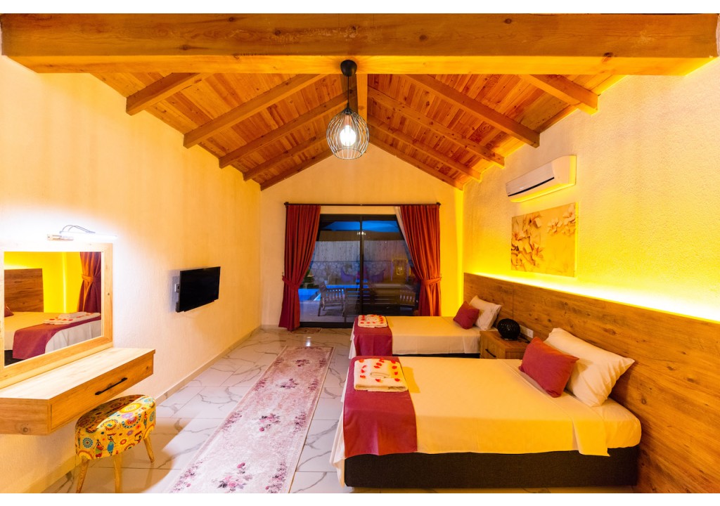 Detayları; İki adet tek kişilik yatak, makyaj masası, komidin, klima, elbise dolabı, banyo ve tuvalet bulunmaktadır.