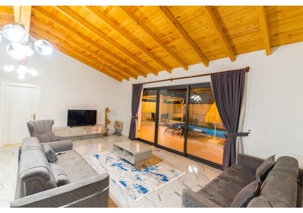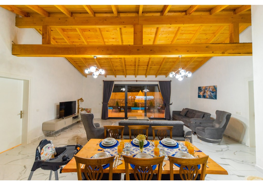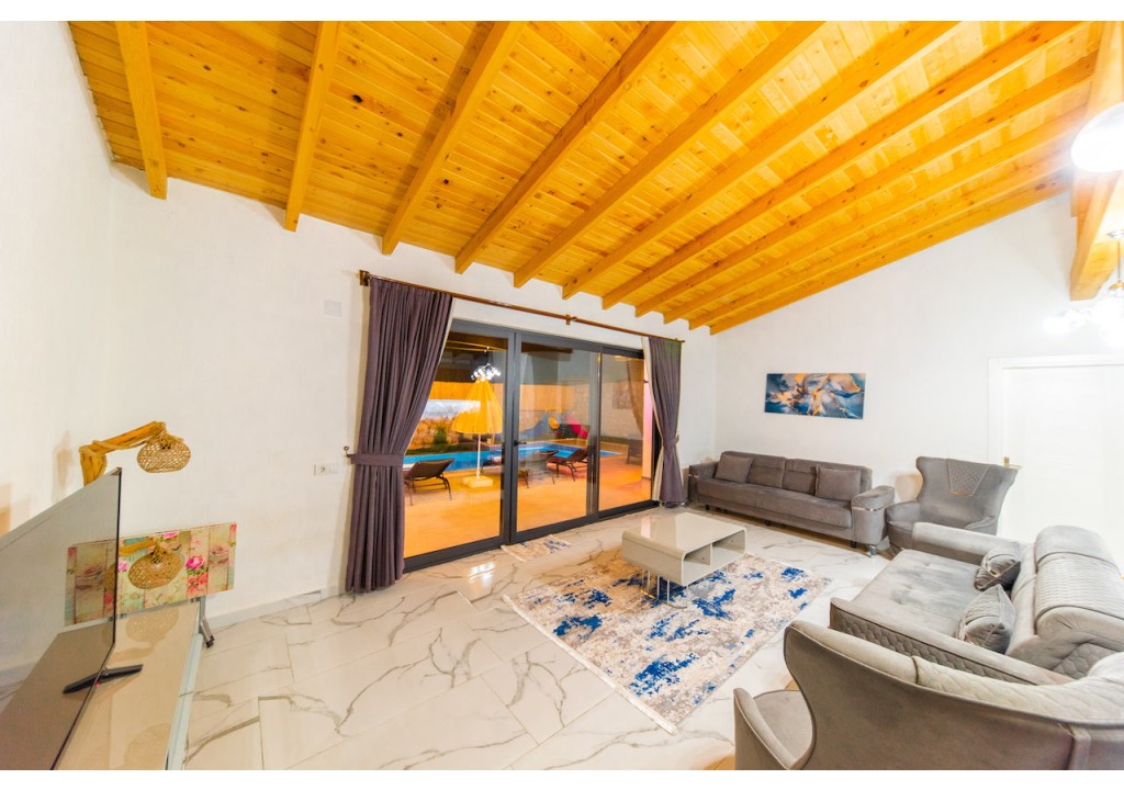 Detayları; Oturma grubu, Uydu TV (LCD), Klima, 4 kişilik yemek masası, Havuz terasına çıkış,