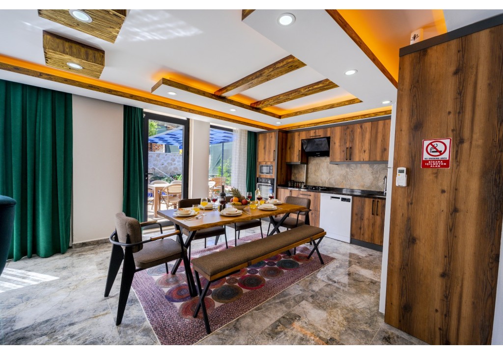 Detayları; Oturma grubu, Uydu TV (LCD), Klima, 6 kişilik yemek masası, Havuz terasına çıkış,