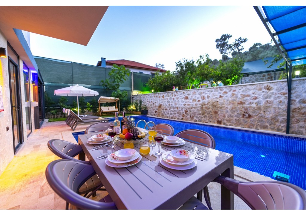 Kalkan’ın Patara mevkiine konumlandırılmış Villa Destan, 3 yatak odalı muhafazakar bir villadır.Havuz bölgesi dışarıdan görünmeyen villamız, muhafazakar aileler ve balayı çiftleri için en uygun seçimlerden birisidir.