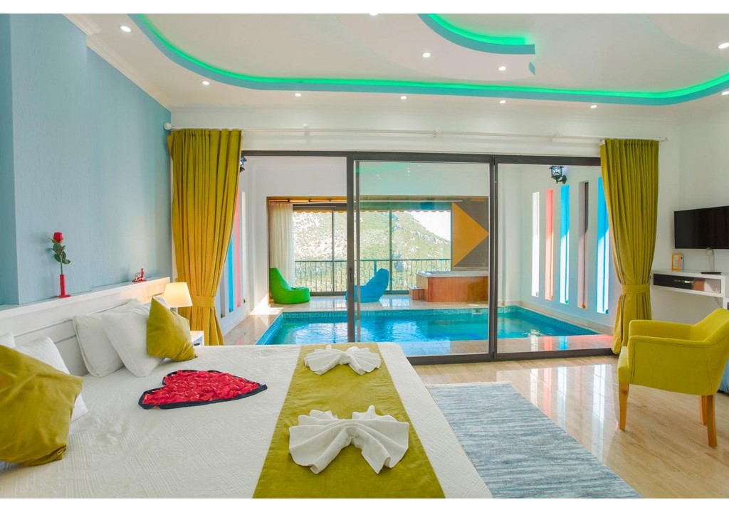 Kalkan’ın İslamlar mevkiinde, yeşillikler içinde yer alan Villa Dimare 1; 2 yatak odalı, 4 kişi konaklama kapasiteli, havuz bölgesi dışarıdan görünmeyen muhafazakâr bir villadır. Sakin ve huzurlu bir tatil geçirmek isteyen misafirler için en uygun seçeneklerden biridir.