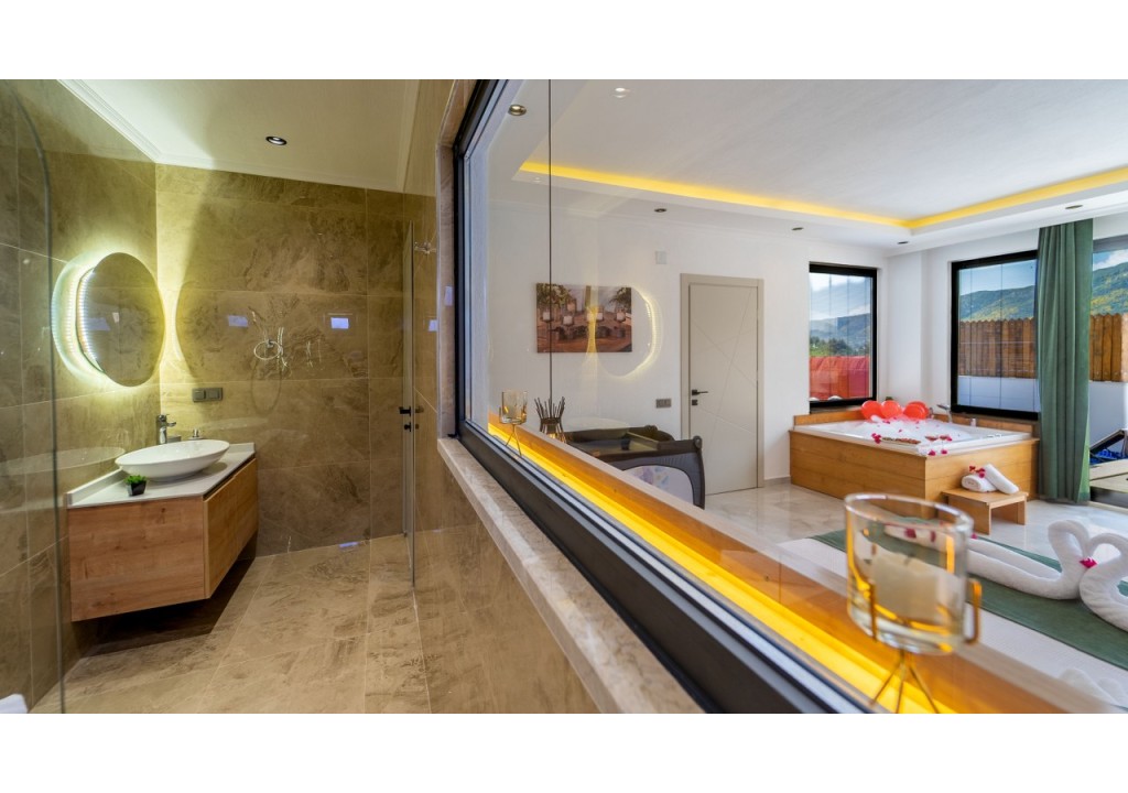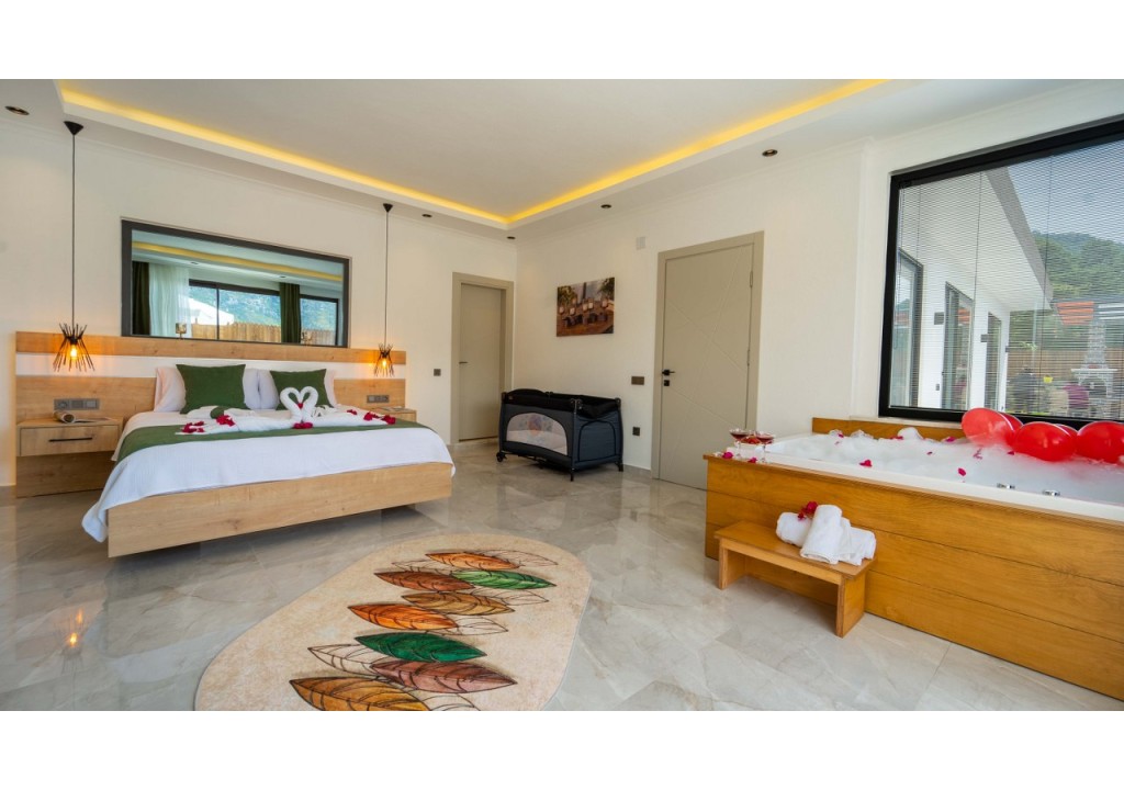 Detayları; Çift kişilik yatak, makyaj masası, komodin, klima, elbise dolabı, jakuzi banyo ve tuvalet bulunmaktadır.