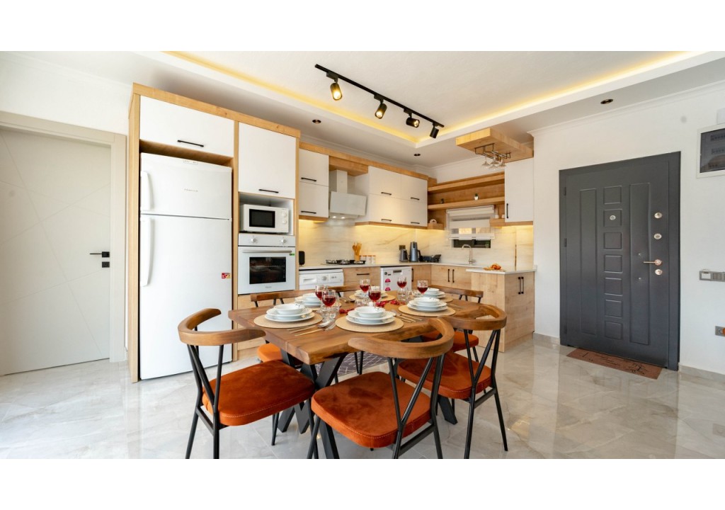 Detayları; Buz dolabı, Bulaşık makinesi, Fırın 4’lü Ocak (ankastre), Mikrodalga fırın, Elektrikli su ısıtıcı,4 kişilik yemek takımı, Tava, Tencereler, Çatal bıçak vb.