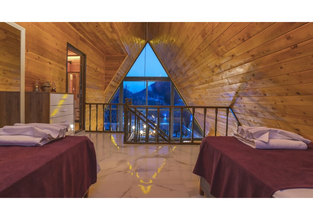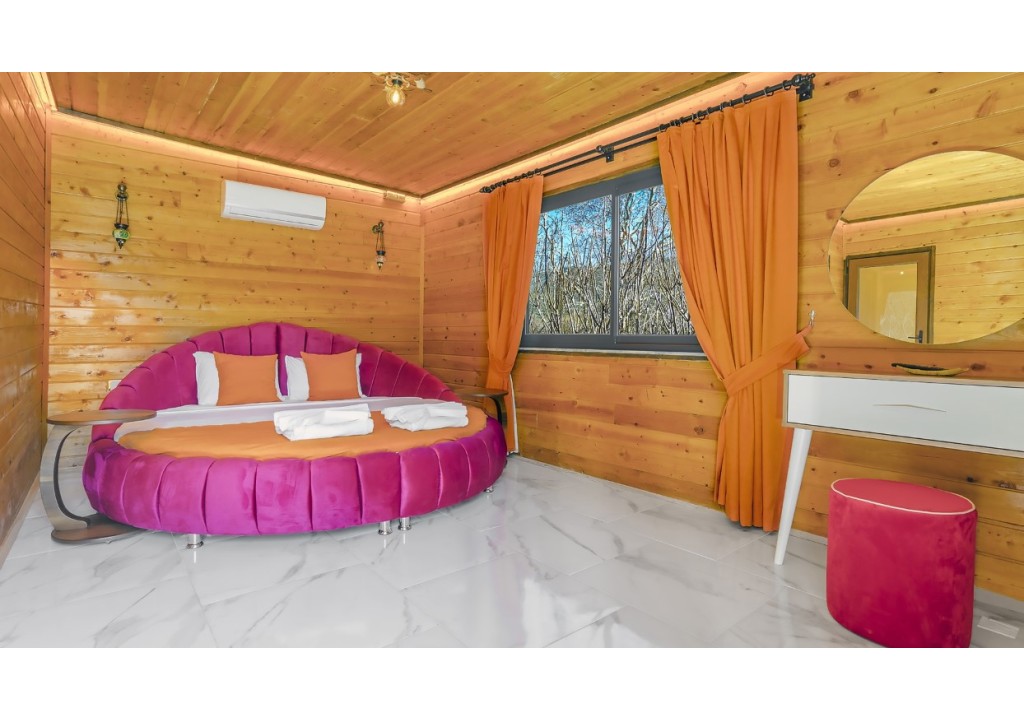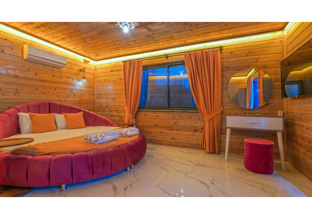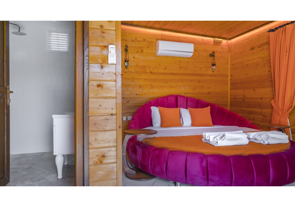 Detayları; Çift kişilik yatak, makyaj masası, komidin, klima, elbise dolabı, banyo ve tuvalet bulunmaktadır.