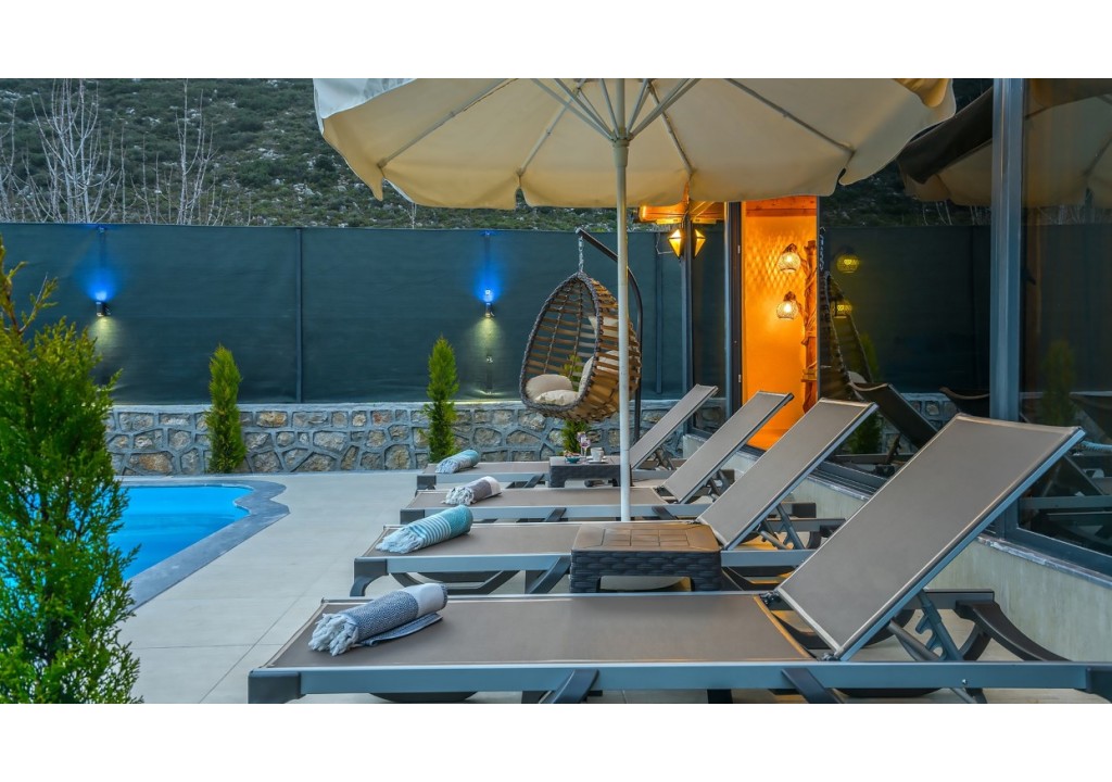 Kalkan’ın Bezirgan Köyü’nde, yeşillikler içinde konumlanan Villa Doğanay, 2 yatak odalı ve havuz alanı dışarıdan görünmeyen muhafazakâr bir villadır. Sakin ve huzurlu bir tatil arayan çekirdek aileler ile balayı çiftleri için ideal bir konaklama seçeneği sunmaktadır.