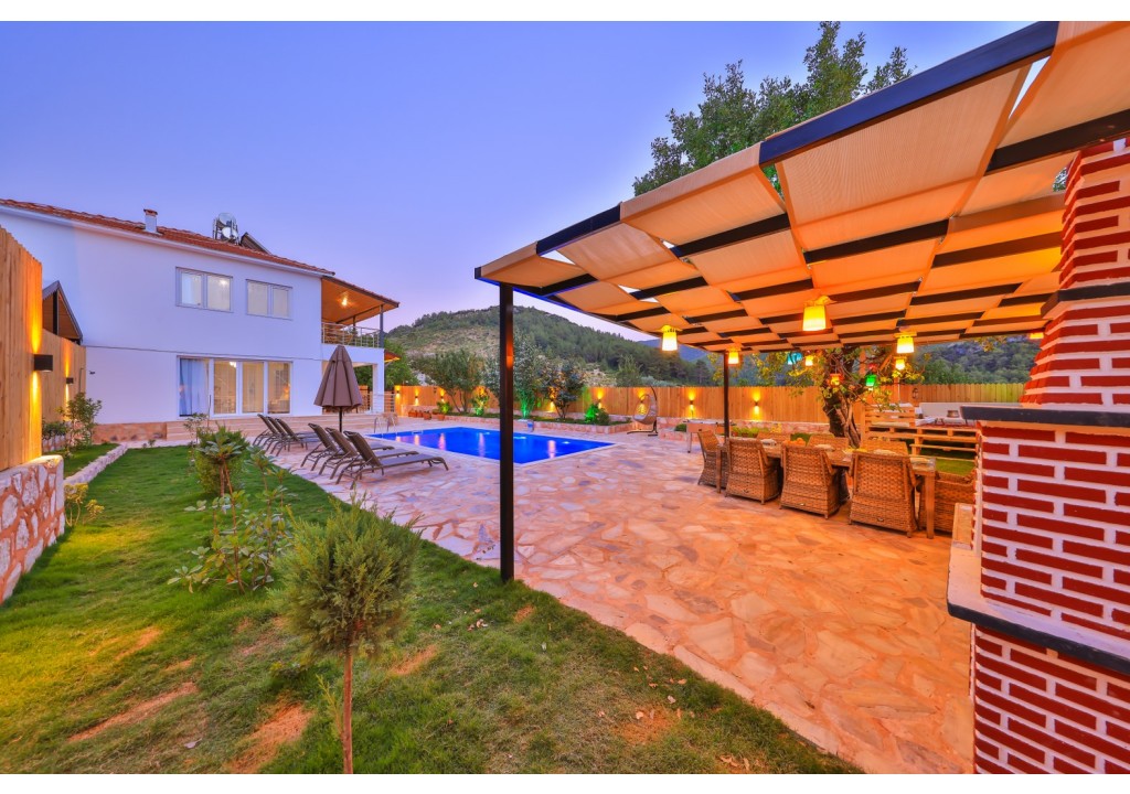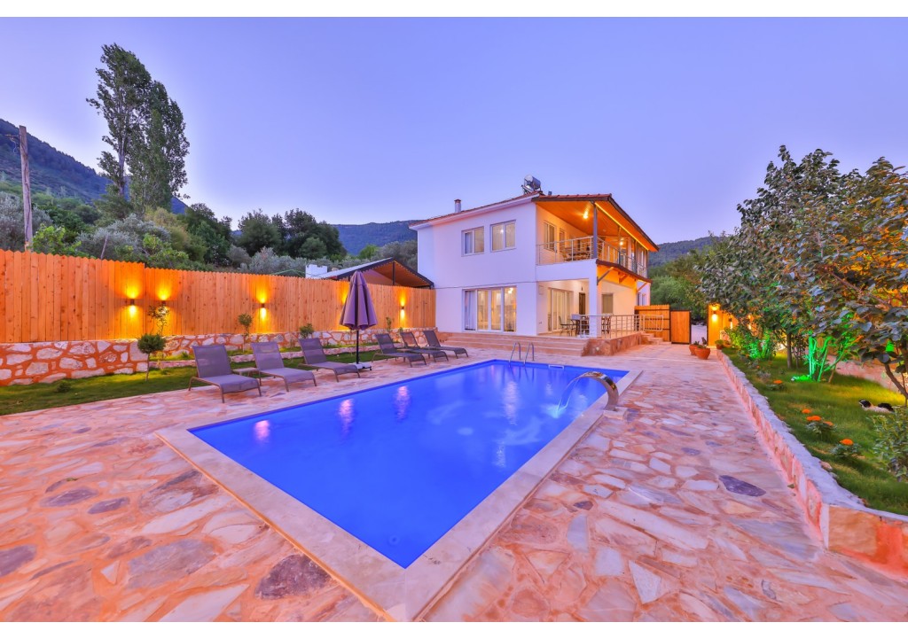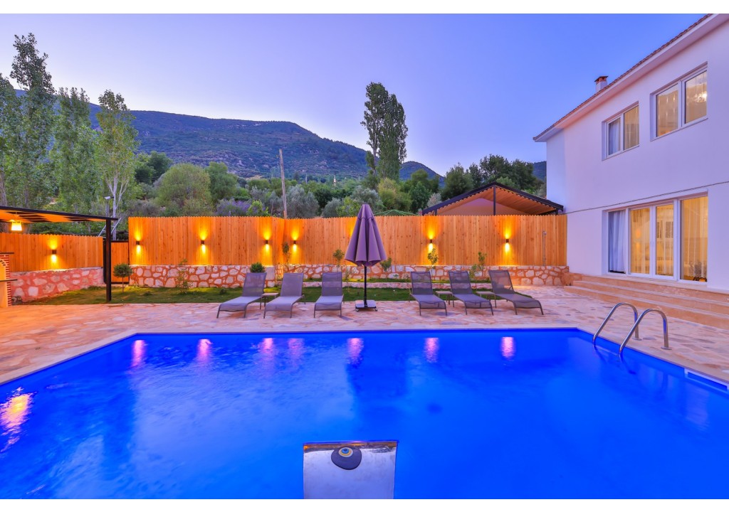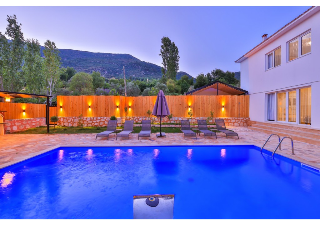 Kalkan’ın Hacıoğlan Köyü’nde, yeşillikler içinde konumlanan Villa Dr; 5 yatak odalı, havuz alanı dışarıdan görünmeyen muhafazakâr bir villadır. Sakin ve huzurlu bir tatil arayan misafirler için ideal seçenekler arasında yer almaktadır.