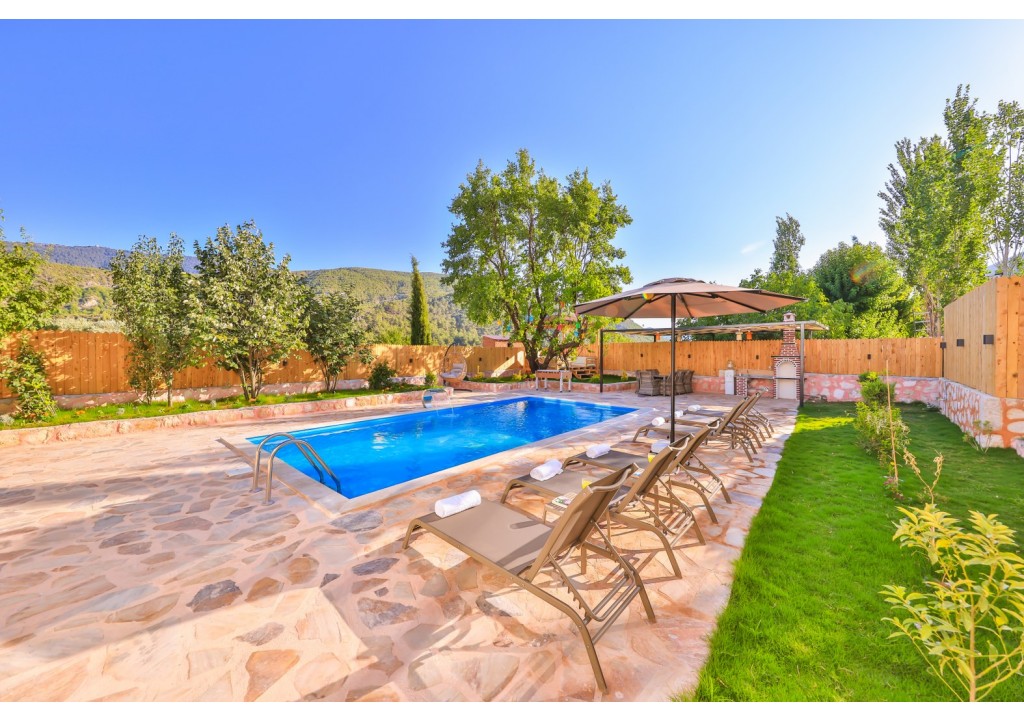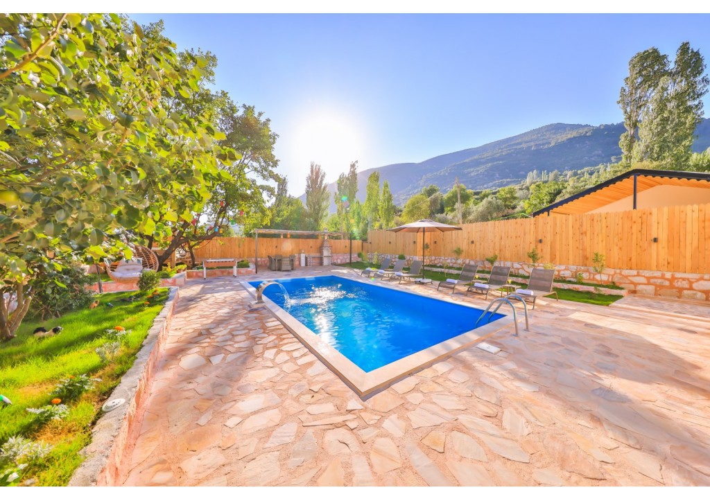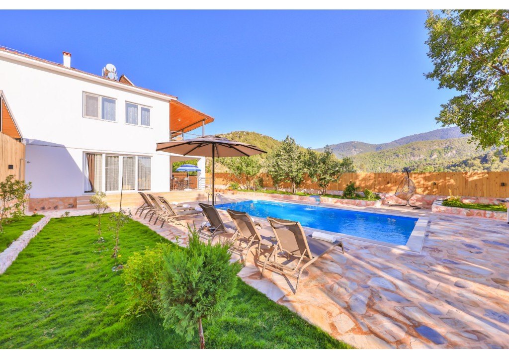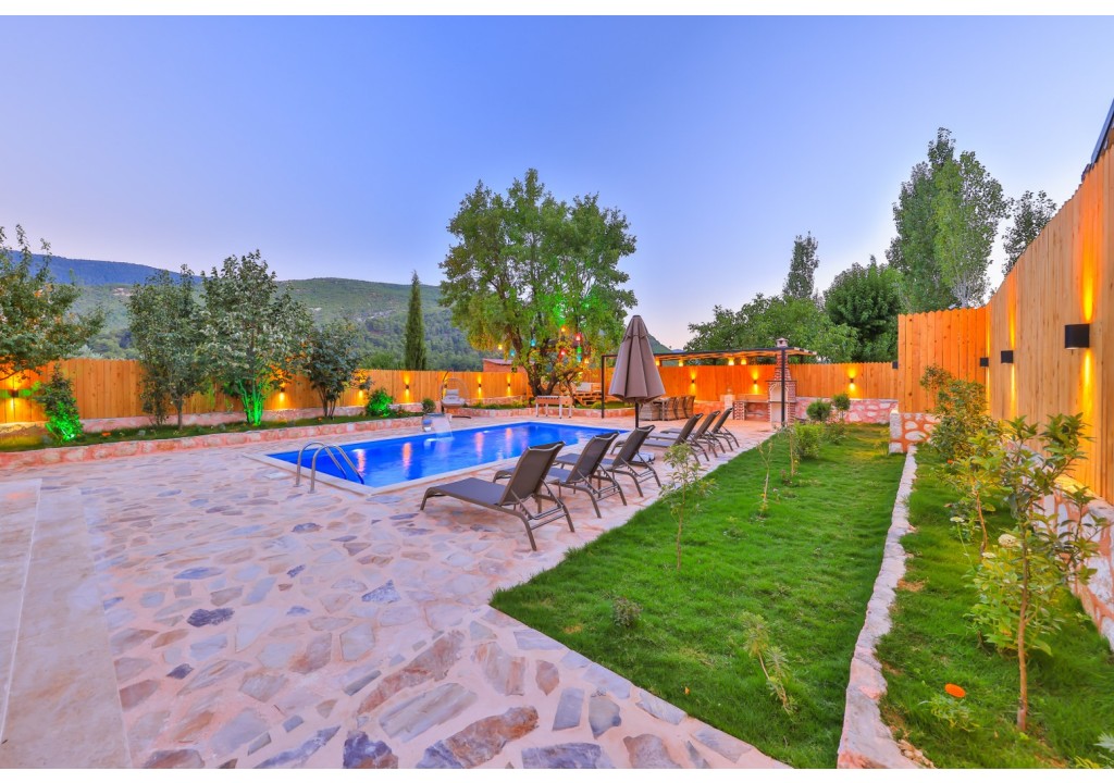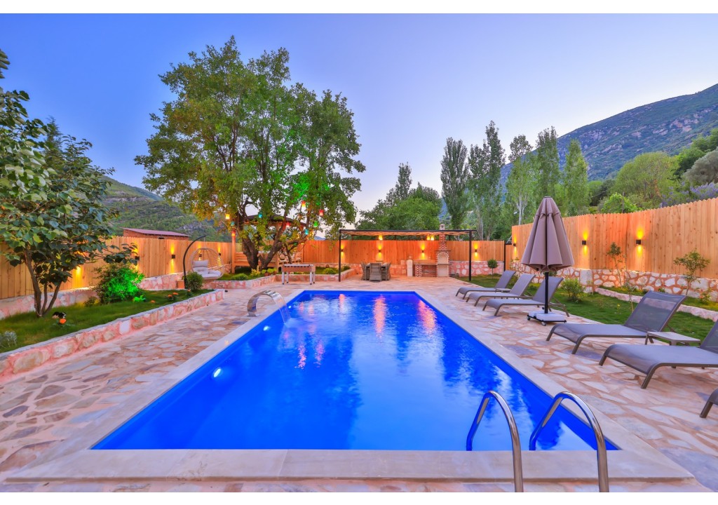 Kalkan’ın Hacıoğlan Köyü’nde, yeşillikler içinde konumlanan Villa Dr; 5 yatak odalı, havuz alanı dışarıdan görünmeyen muhafazakâr bir villadır. Sakin ve huzurlu bir tatil arayan misafirler için ideal seçenekler arasında yer almaktadır.